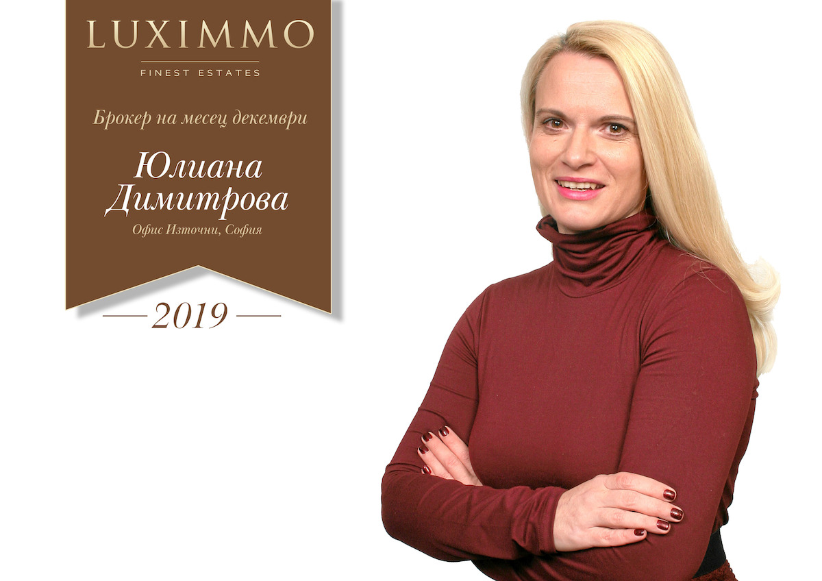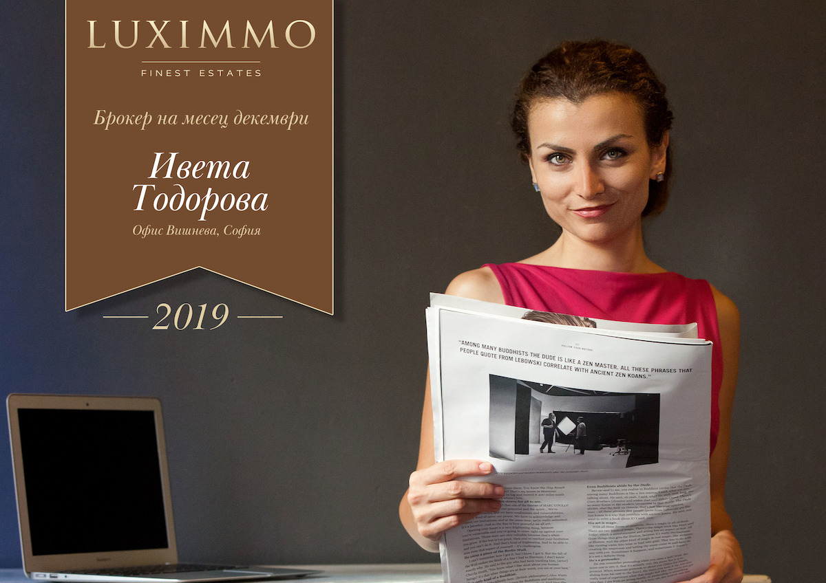 През празничния декември консутантите на Luximmo продължиха да работят вдъхновено и да сбъдват мечтите на своите клиенти, откривайки точните домове за тях. Коледа се оказа изключително благоприятен период, през който покупката на имот остана все така желана, а професионалистите на Luximmo бяха насреща без значение от деня или часа. И резултатите не закъсняха! Представяме Ви хората, които си заслужиха титлата Брокер на месеца през декември:
