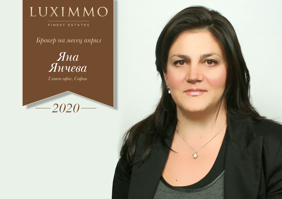 Яна Янчева е настоящия носител на титлата „Брокер на годината“ и за професионалист като нея извънредното положение не е оправдание за незадаволителни резултати. Яна управлява продажбите в няколко големи сгради ново строителство в столицата, работи с голям брой от чуждестранните клиенти на Luximmo и винаги служи за пример на младите брокери в екипа на агенцията. Разгледайте всички нейни оферти тук!