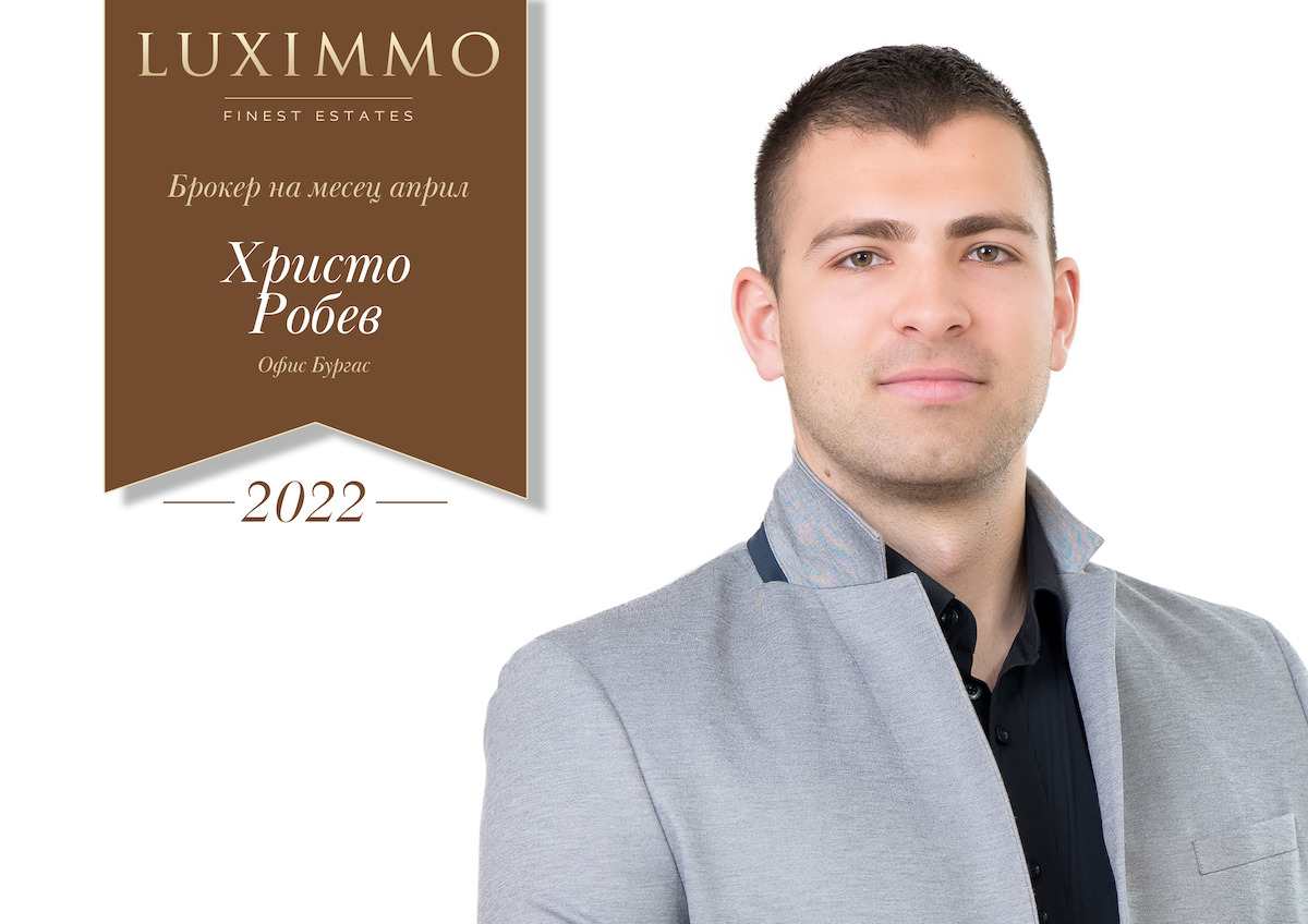 Христо Робев притежава огромна доза амбиция и енергичност, която и този месец му спечели място в класацията „Брокер на месеца“. Христо умее да намери перфектния имот за всеки свой клиент, спестявайки му време и пари. Той е консултант, който с удоволствие ще бъде с Вас от самото начало до самия край на процеса по придобиването на нов имот. Запознайте се с цялото портфолио на Христо Робев тук!