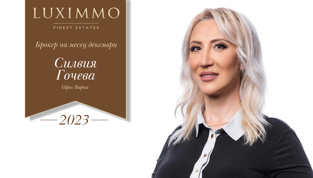 Високи нива на продажби за месец декември постигна Силвия Гочева, която е един от най-опитните консултанти в редиците на агенцията, успешно съчетаваща и позицията на регионален мениджър за Черноморското крайбрежие. Силвия притежава богат професионален опит и постоянство, а безупречната си репутация дължи на изградените дългосрочни отношения с клиенти, партньори и инвеститори. Ако търсите нов дом край топлите вълни на Черноморието, Силвия със сигурност е специалистът, към когото да се обърнете. Вижте всички нейни оферти тук!