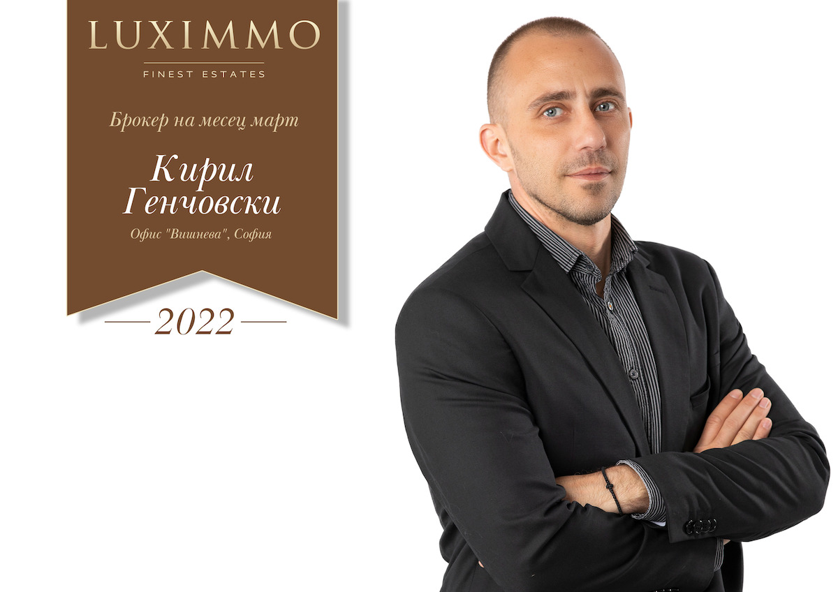 Кирил Генчовски е едно от новите попълнения в офис „Вишнева“, които с голямо усърдие защитава своето място в най-награждавания екип на агенцията. Той е съобразителен, целеустремен, високо информиран и винаги работещ в полза на клиентите, които са му се доверили. Ако търсите или предлагате имот в София, не се колебайте да се свържете с него. Разгледайте цялото портфолио на Кирил тук!