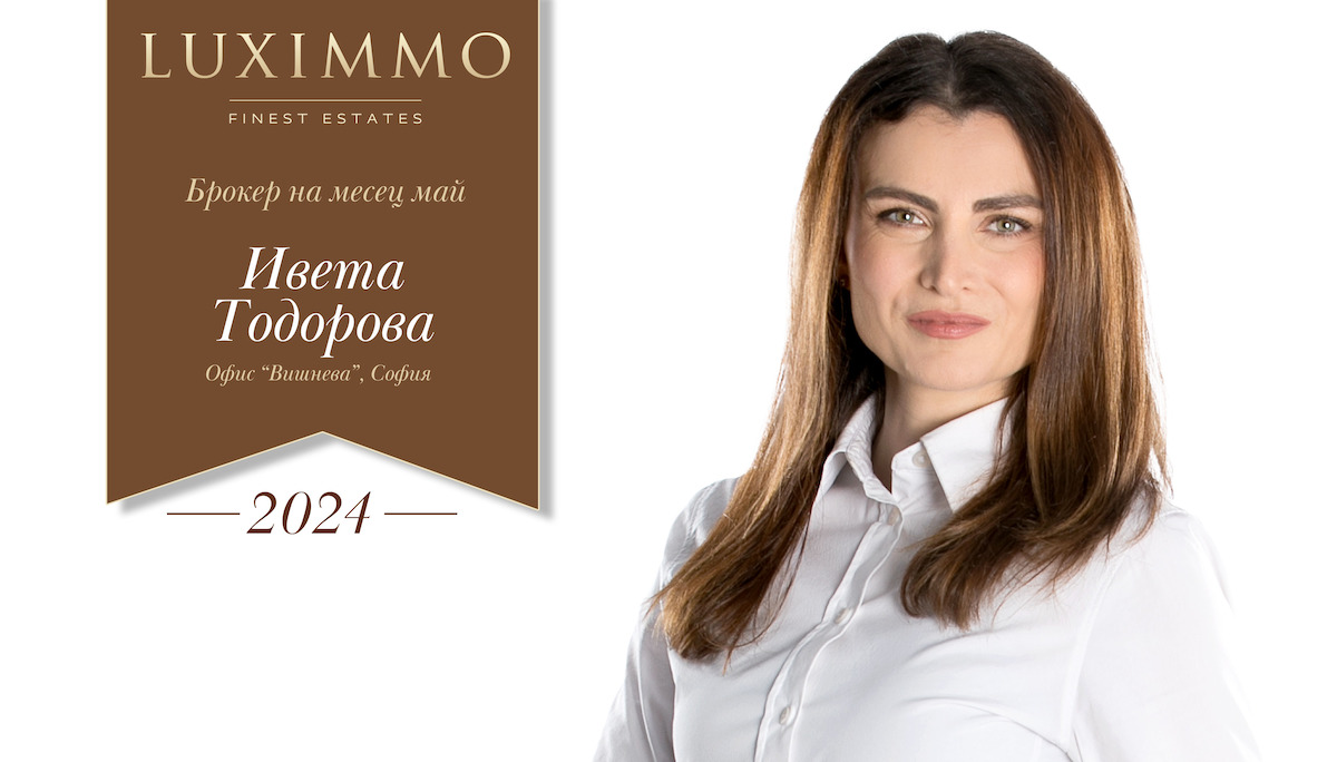 Ивета Тодорова традиционно бележи високи търговски постижения и месец май не прави изключение. Като опитен специалист в областта на имотите, Ивета успява да предложи на своите клиенти експертното си мнение и професионалното си отношение, които карат хората да ѝ се доверяват многократно и да я препоръчват горещо. Запознайте се с портфолиото ѝ тук!