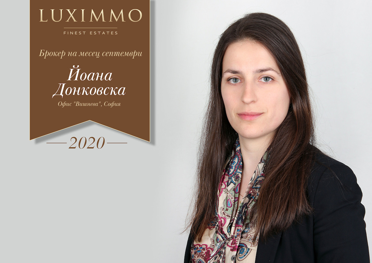 Йоана Донковска е пример за постоянство, което определено дава резултат, защото тя е част от класацията „Брокер на месеца“ всеки месец вече повече от година! Високите й търговски постижения се дължат на експертизата и в областта на новото строителство – Йоана с лекота отговаря на всеки въпрос, свързан с покупката на имот „на зелено“ и максимално улеснява своите клиенти. Разгледайте цялото й портфолио тук!