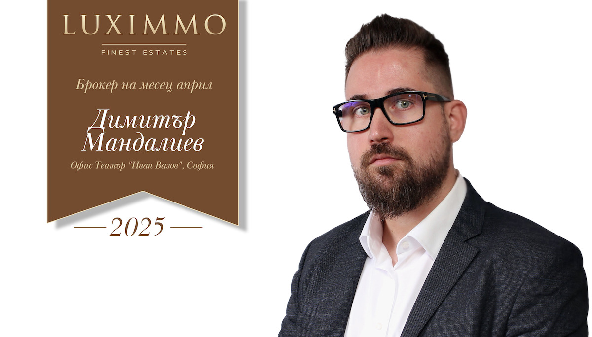 Димитър Мандалиев от офис "Иван Вазов" стартира летния сезон с увереност и заслужено признание сред най-успешните брокери на LUXIMMO. Със своята енергия, последователност и отдаденост към клиентите, той се утвърждава като консултант, на когото може да се разчита. Без значение от мащаба или спецификата на търсенето, Димитър подхожда с внимание и професионализъм към всяка сделка. От първата стъпка до финалните детайли, той е до своите клиенти, гарантирайки спокойствие и увереност през целия процес. Разгледайте неговото портфолио тук.