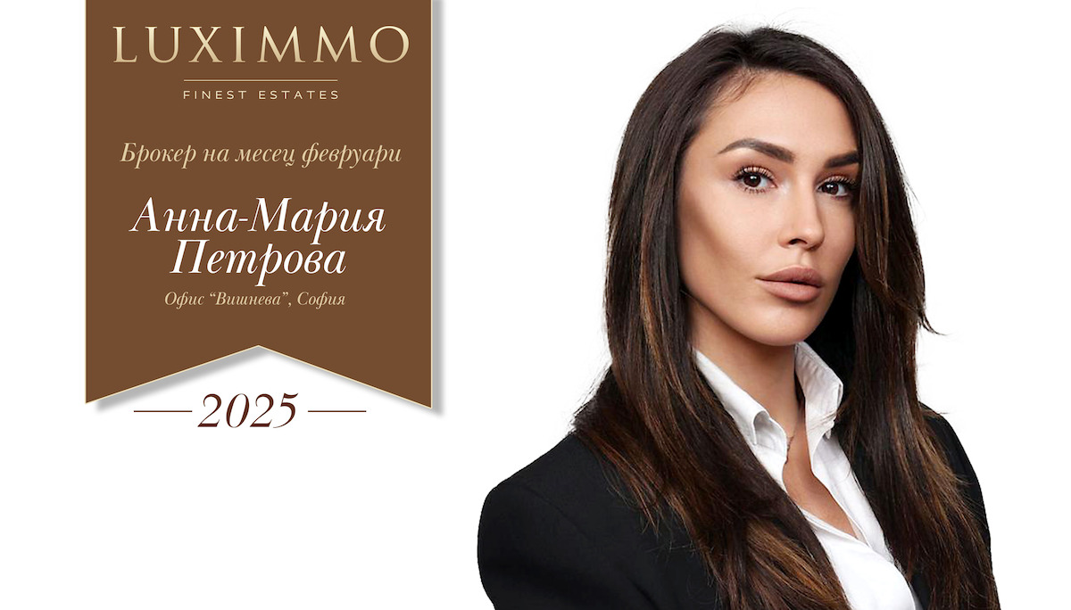 Поздравяваме целия екип на LUXIMMO за отдадеността и професионализма, които показахa през този месец. Успехът ни през февруари е резултат от продължаващия ни стремеж към усъвършенстване и иновации, и сме убедени, че с тази динамика и натрупан опит ще продължим да бъдем водещи в бранша на недвижимите имоти в предлагането на качествена и изключителна клиентска услуга.