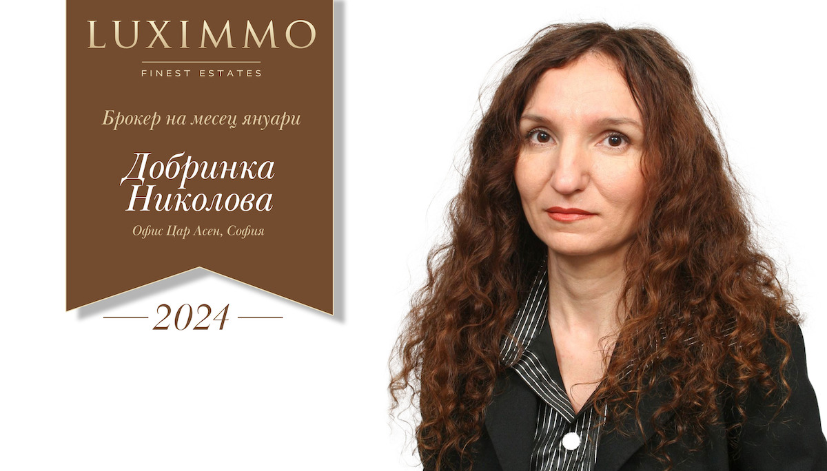 Професионалните успехи на Добринка Николова в сферата на недвижимите имоти са завидни. Тя поставя успешно начало на календарната година, заемайки почетно място в месечната ни класация „Брокер на месеца“, давайки сериозна заявка за високи успехи и в бъдеще. Добринка печели доверието на клиентите си със своята експертиза, отговорност и умението ѝ да поставя клиента на преден план. Ако й се доверите, тя несъмнено ще открие Вашия имот. Разгледайте цялото ѝ портфолио тук!