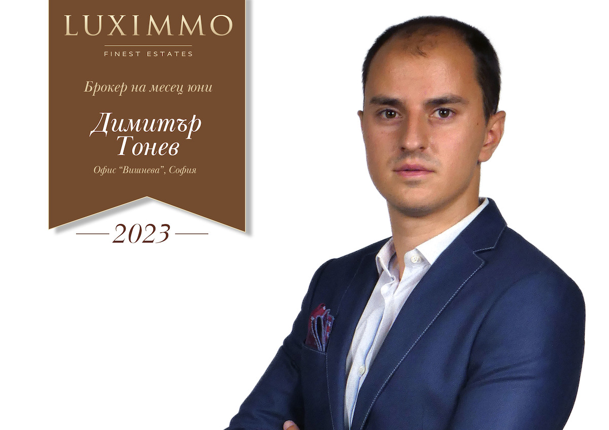 Развълнувани сме да поздравим и Константин Калъчев за изключителните постижения през месец юни! За него без колебание можем да споделим, че е олицетворение на професионализъм, който гарантира винаги отлични резултати. Прецизен, надежден и ориентиран към детайлите, той прави дори невъзможното възможно, когато става въпрос за осигуряване на най-добрите сделки за клиентите, които му се доверяват. Разгледайте цялото портфолио на Константин Калъчев тук!