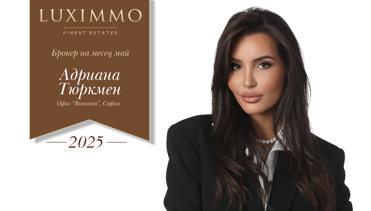 Всеки успешен консултант има свой личен подход – при Адриана Тюркмен това е способността да изслушва, да усеща нуждите на клиента и да предлага реални решения. Без излишна показност и с много старание, Адриана постигна впечатляващи резултати и този месец, извоювайки си почетно място в класацията „Брокер на месеца“. Независимо дали търсите дом, инвестиция или промяна - тук сте в сигурни ръце. Разгледайте портфолиото ѝ тук.
