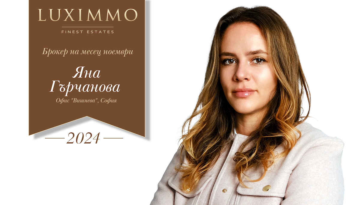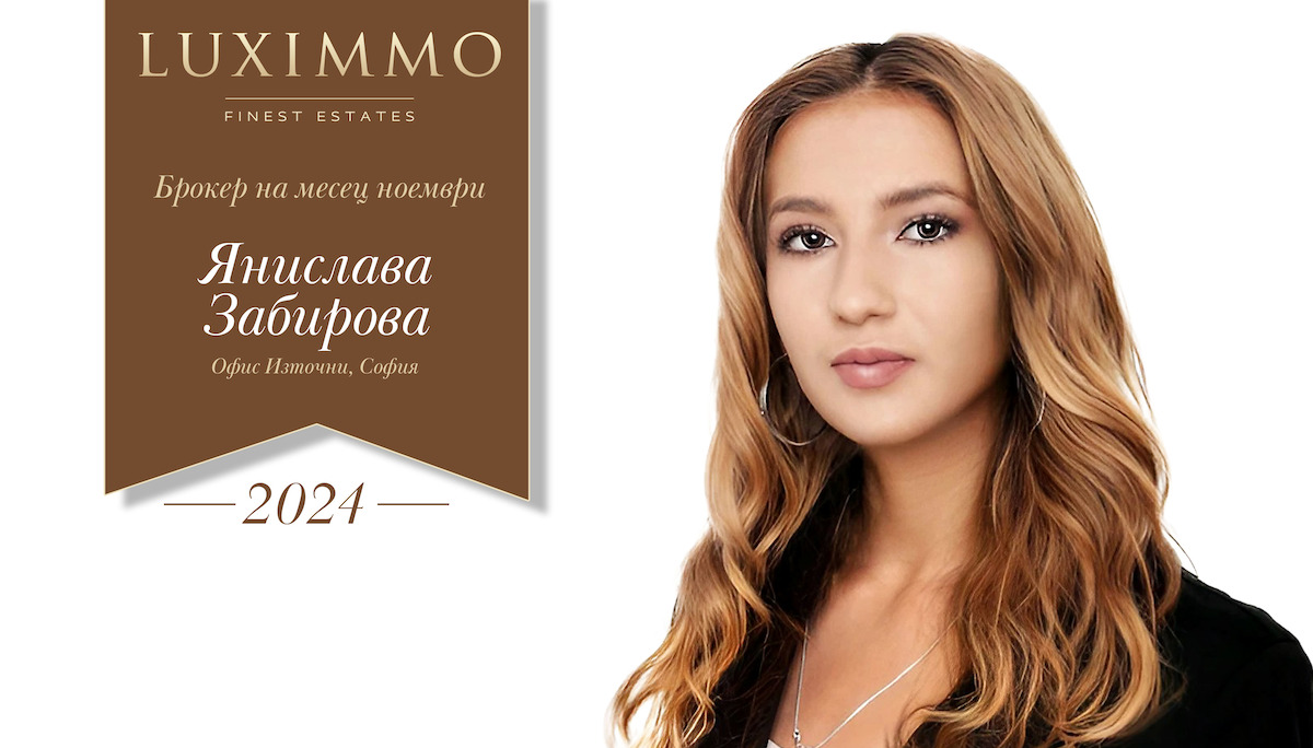 Като изключителен лидер и носител на титлата „Консултант с най-висок оборот“ за 2023 година, Яна Янчева уверено се е насочила към перфектно затваряне на календарната година, участвайки всеки месец в класацията ни „Брокер на месеца“ за 2024. Този перфекционизъм и отдаденост е отражение на отношението, което отдава към своите клиенти, поставяйки ги в центъра на всичко, което прави. Ако търсите консултант, който да бъде до Вас на всяка стъпка, не се колебайте да се свържете с Яна. Разгледайте портфолиото ѝ тук.