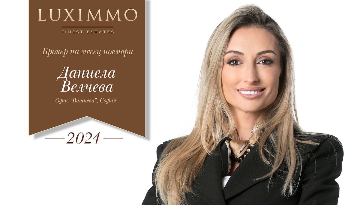 Даниела Велчева е консултант с особен дар за изграждане на доверие още от първата среща. Този месец тя заема почетно място в класацията ни, благодарение на невероятната способност да представя всеки имот като част от история, както и на умението ѝ да задава правилните въпроси, да чуе и най-дребните детайли от желанията на клиента и да ги удовлетвори. Запознайте се с портфолиото ѝ тук.