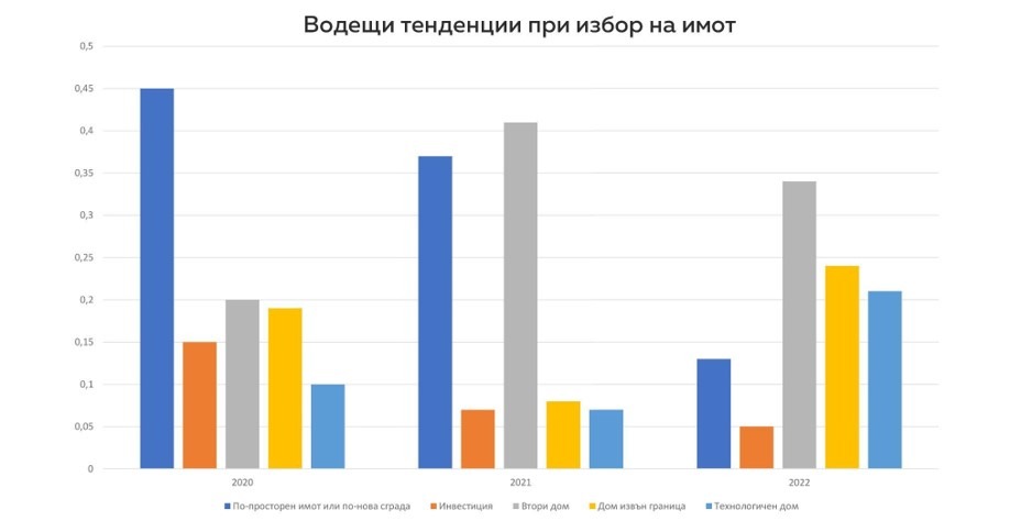 Още от 2020 г. се наблюдава засилено внимание към закупуването на къщи в райони, близки до големите градове в страната. Това заяви основателят на iHome Real Estate – Христо Георгиев. По негово мнение подобни имоти, намиращи се в по-спокойни и изолирани места в близост до природата, се търсят предимно като втори дом.
