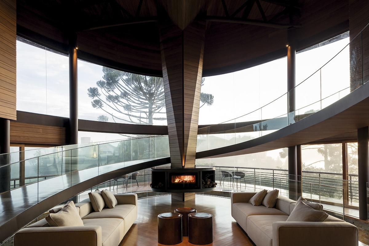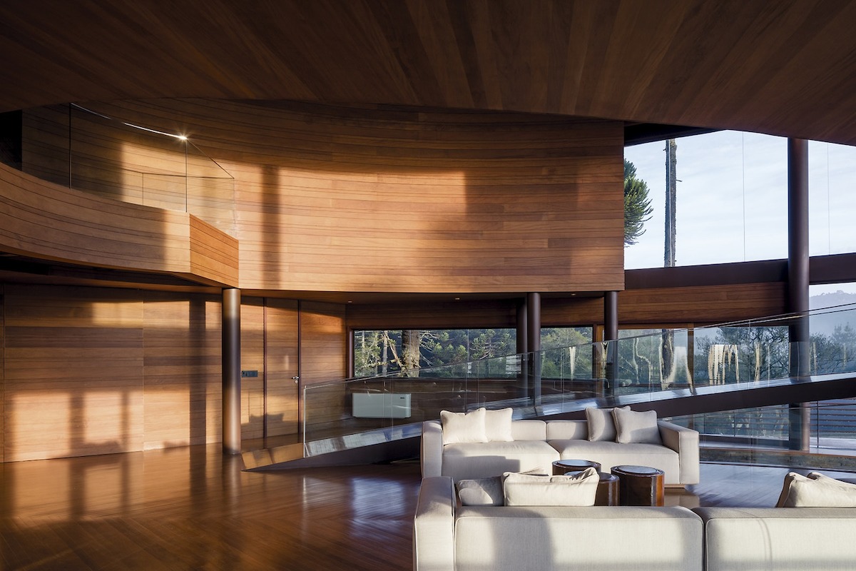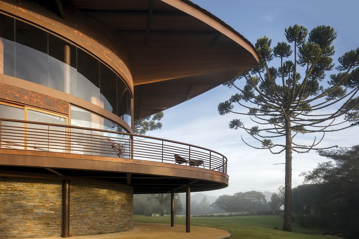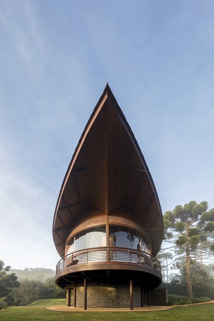 Тази къща първоначално може би Ви прилича на кораб, но вдъхновението за нея е съвсем друго - плодовете на дървото, наречено Араукария. Това архитектурно творение се извисява на 1 600м надморска височина сред планините над Сао Паолу, където климатът е сух и студен през по-голямата част от годината. В местността преобладават сградите в европейски аплийски стил, но не и тази.