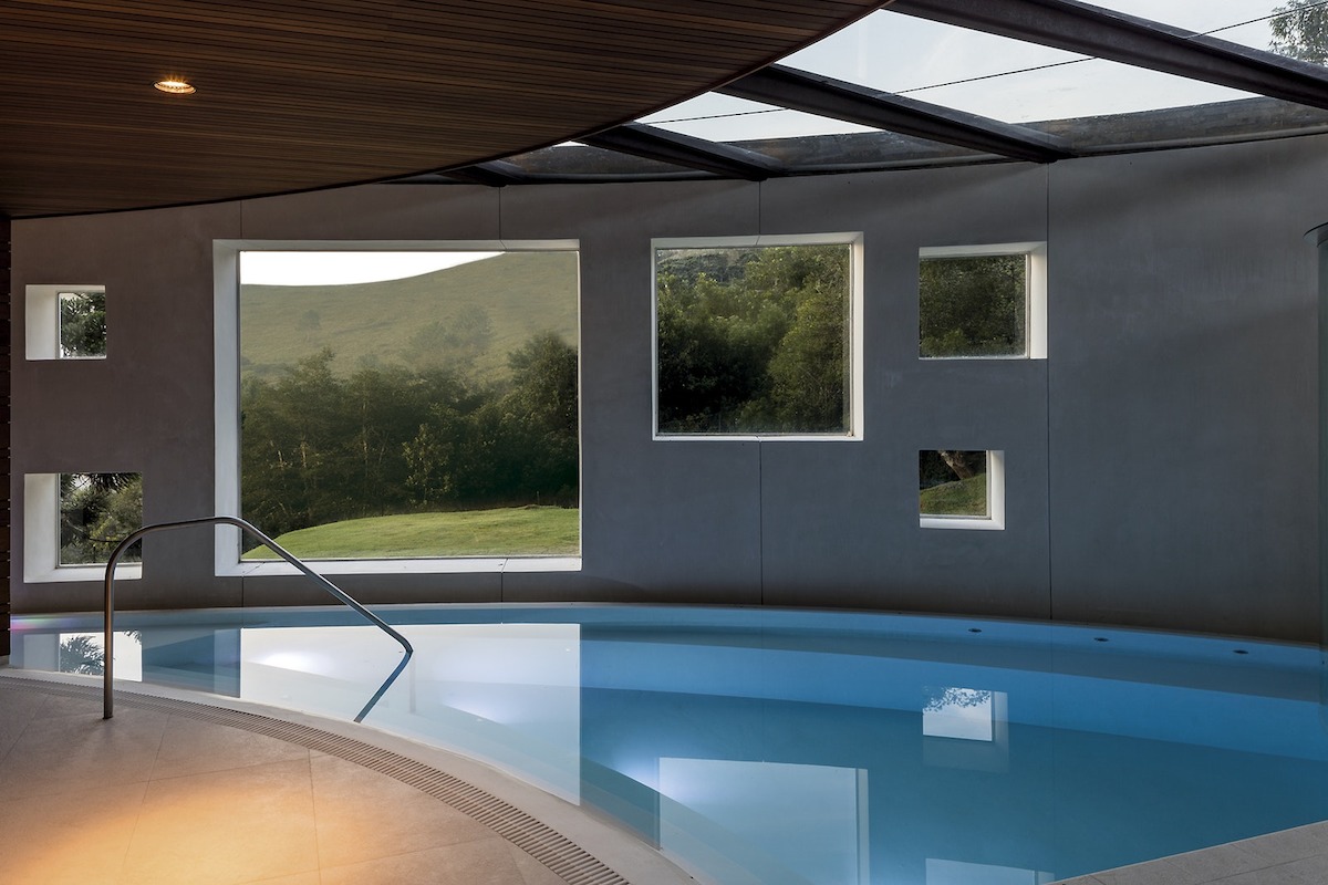 В къщата няма стълби, а рампи. Всекидневната е с елипсовидна форма и плавно преминава в затворен СПА център, разполагащ със сауна и басейн. Над всекидневната са разположени 4 спални и кабинет.