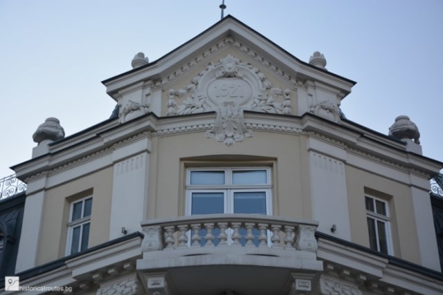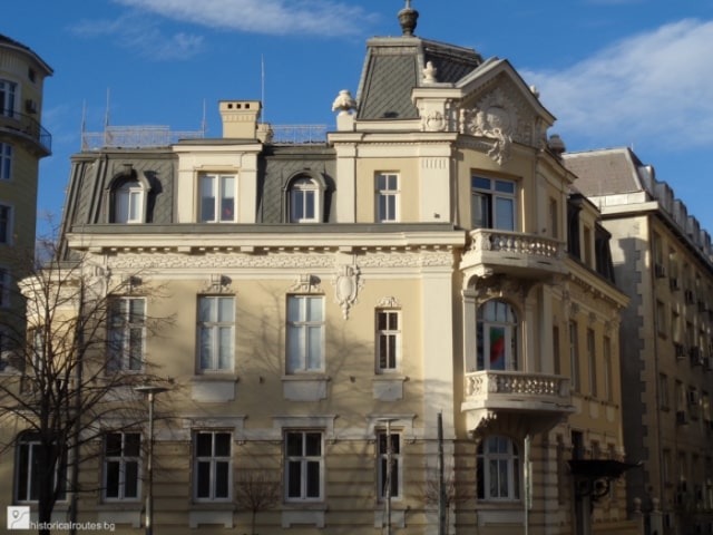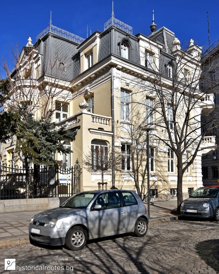 И като имаме предвид техния принос към изграждането на младата столица, съвсем заслужено е, че Лазаров подписва своите публикации на тема „Нашата столица. Нейното благоустрояване и разкрасяване“ във вестник Дневник с псевдонима „К. А. Софийски“. В този случай, ъгловото разположение на имота е позволило на Лазаров да разгърне своята архитектурна фантазия като оформя ъглов акцент на сградата, ограден с два пиластъра. Пиластрите са прекъснати между втория и мансардния етаж с характерния за Лазаров фриз от преплетени листа, последван веднага от солиден корниз. Ъгловата част на мансардния етаж завършва с нов корниз и фантастичен фронтон, останал неповторен на друго място в София.