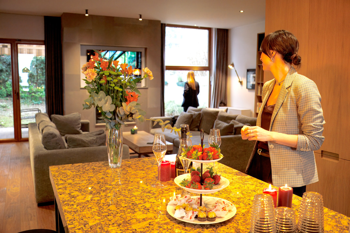 По време на събитието посетителите имаха възможността да се потопят в интериора, където естествената светлина свободно преминава през отвореното пространство на дневната зона.