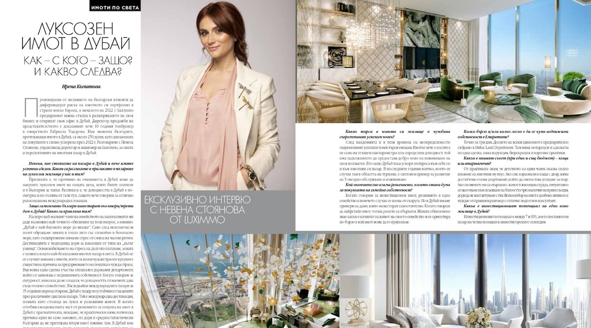 на покупките е силно ускорена през 2022 г. Разговаряме с Невена Стоянова, управляващ директор и акционер на Luximmo, за опита и перспективите на имотния пазар в Дубай.
