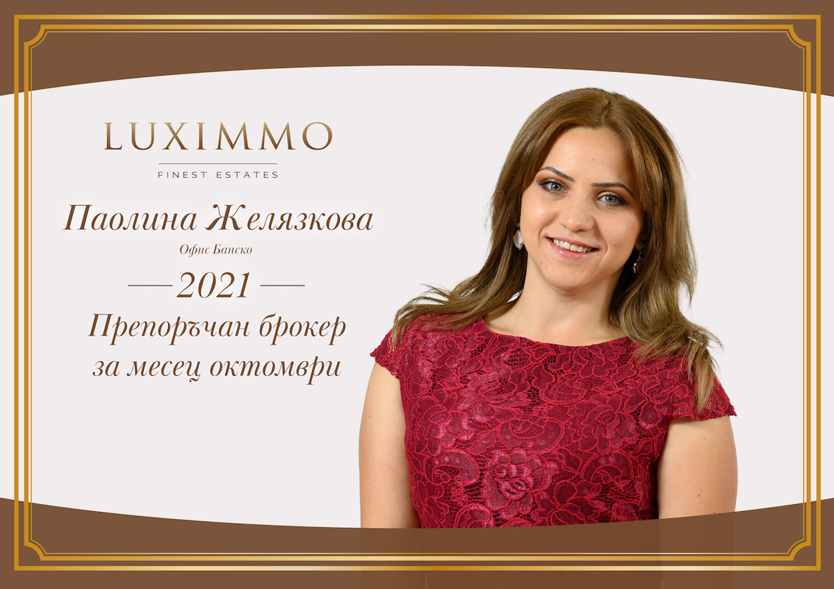 Паолина Желязкова от офис Банско е Брокер на месец октомври, но освен това си заслужи и титлата Препоръчан брокер на месеца с голям брой референции.