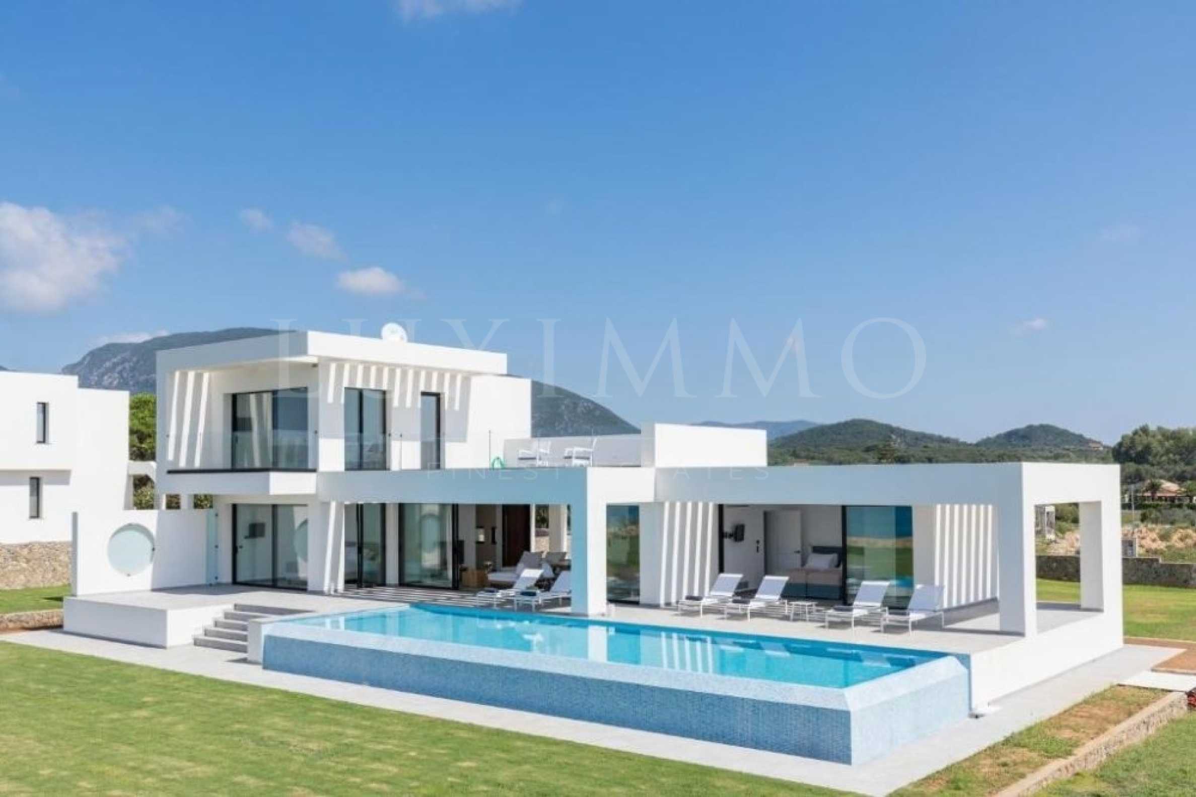 Дизайнът на вилата е минималистичен и е построен с голямо внимание към детайла и с използването на най-модерни материали и облицовки и се състои от три нива, сутерен, партер и първи етаж с общи размери 266,95 кв.м. Партерният етаж с площ 101,04 кв.м. се състои от вградена кухня с най-съвременни уреди, трапезария, хол, WC и 2 самостоятелни спални. Басейнът е достъпен през приземния етаж, който е открито пространство с големи прозорци, откъдето имате пълен изглед към басейна и морето. Вътрешно стълбище ни води до първия етаж с площ 37,00 кв.м. където ще намерим главната спалня със самостоятелна баня. Вътрешното стълбище ни води и към сутерена, където има още една спалня със самостоятелна баня, мокро помещение и голяма стая, която може да се използва като стая за игри или фитнес зала.