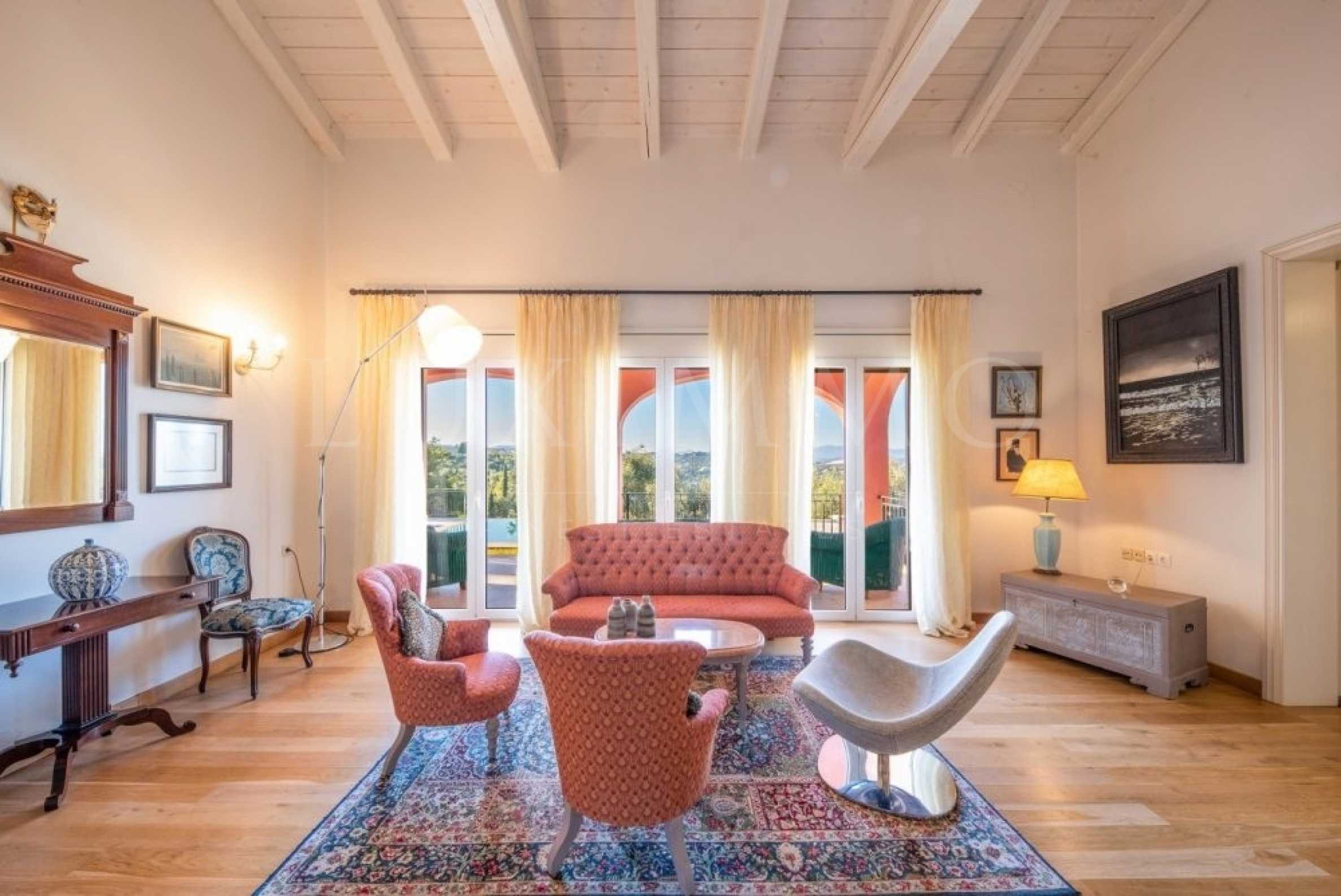 Това е двуетажна вила от 295 кв.м, построена върху парцел от 5 076,68 кв.м. Имот с уникален характер; можете да се насладите на горещия си шоколад пред камината, да прочетете книгата си в офиса или да се насладите и да се отпуснете в красиво озеленените зони, гледайки гледката.