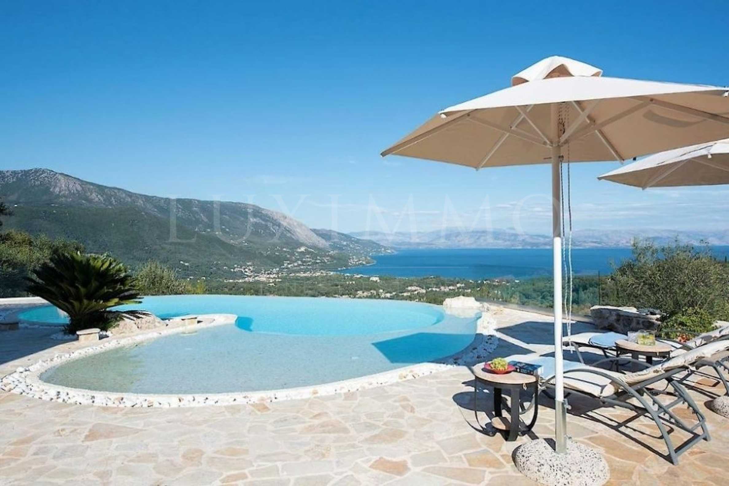 Разположена на склон на хълм, тази вила с обща площ от 300 кв.м. предлага ненадмината гледка към зелените околности на Корфу и спокойното Йонийско море. Разположен на една от най-високите точки на Централен Корфу, между селата Като Коракиана и Ано Коракиана, луксозният имот включва основната къща и уютната вила.
