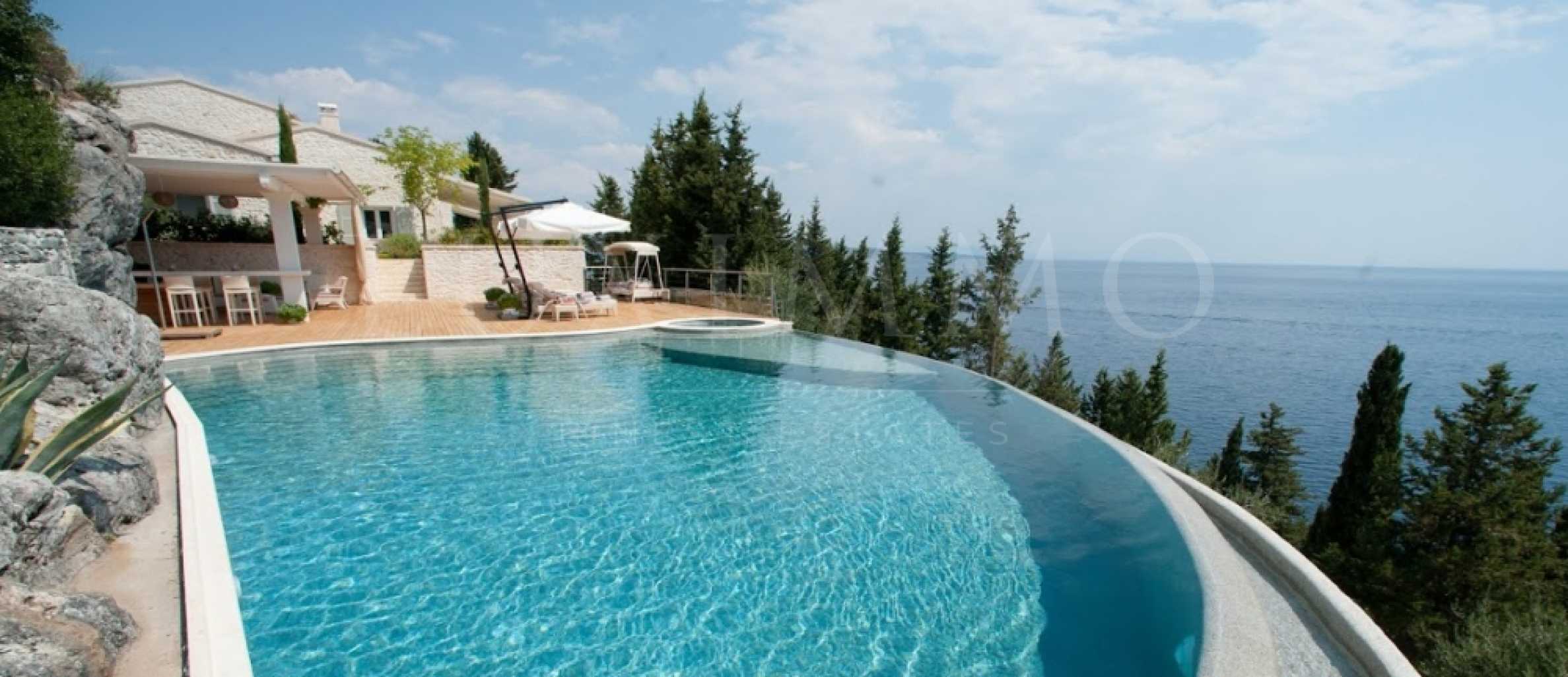 Вилата всъщност е вкарана в скалата на надморска височина от 25 м над един от най-красивите заливи на Корфу.