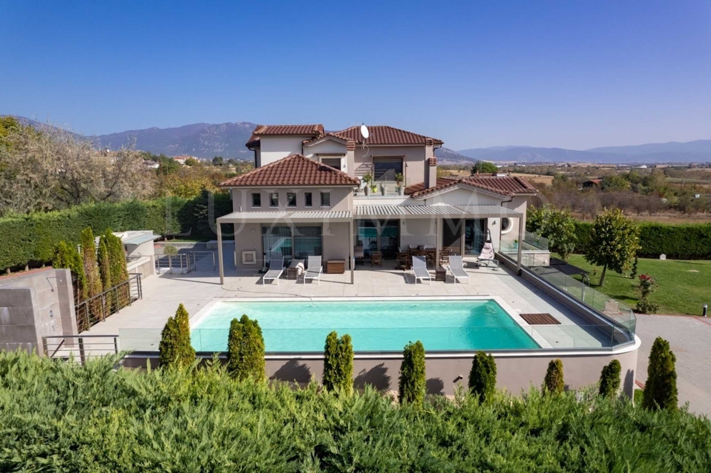 Луксозна къща 540 кв.м. върху парцел от 3250 кв.м. със собствен басейн и гледка към амфитеатъра се предлага за продажба в района на Драма Панорама.