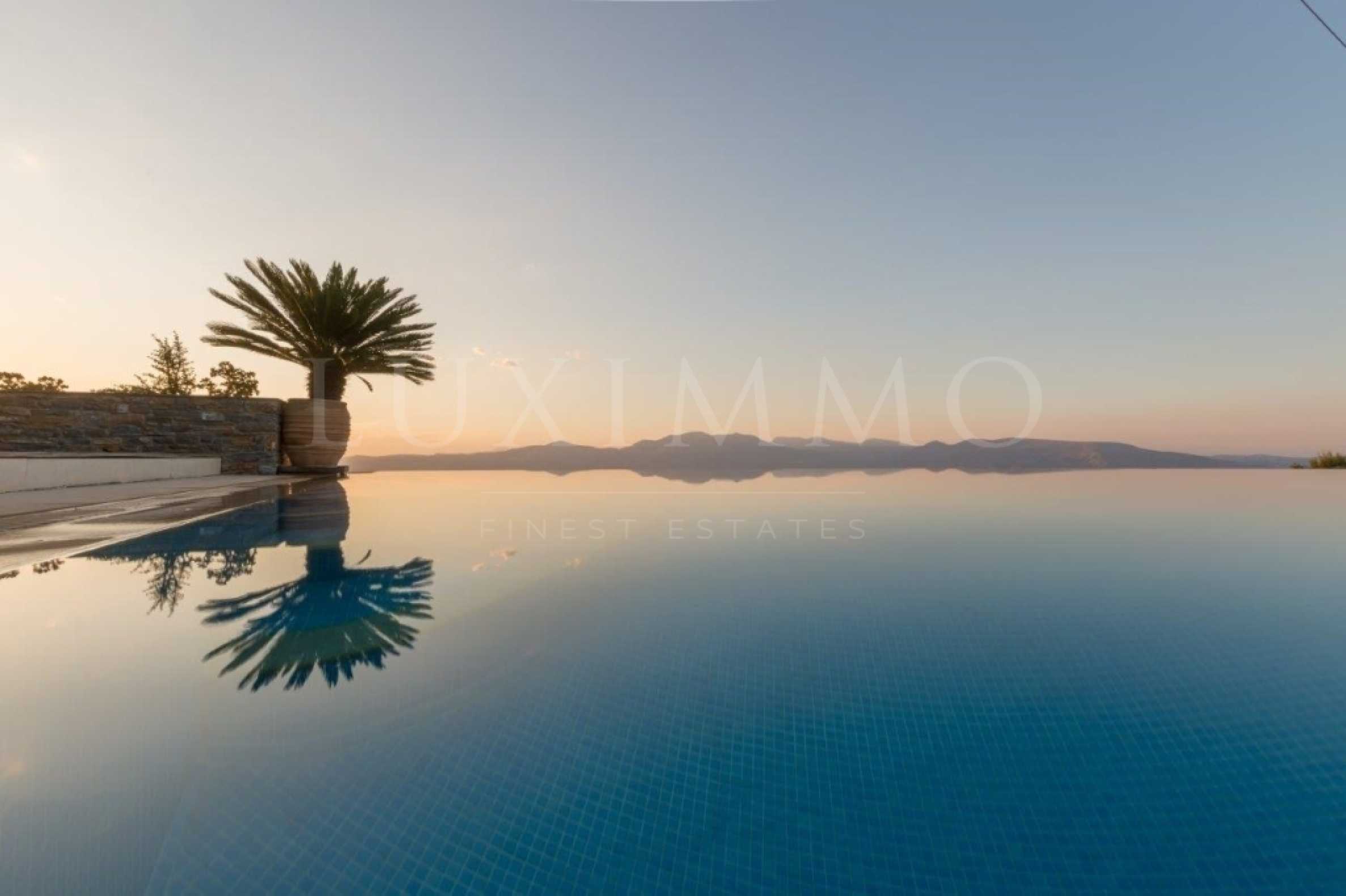 Вила ЗА ПРОДАЖБА в Kimi Center за €1.100.000. Тези 440 кв.м. Вилата се състои от 3 нива и разполага с 3 спални, 2 всекидневни, 2 кухни, 2 бани и WC. Имотът също така разполага с гледка към морето, Дограма: , паркинг, складово помещение кв.м., градина, басейн. Сградата е построена през 2006 г. Площ на парцела: 2120 кв