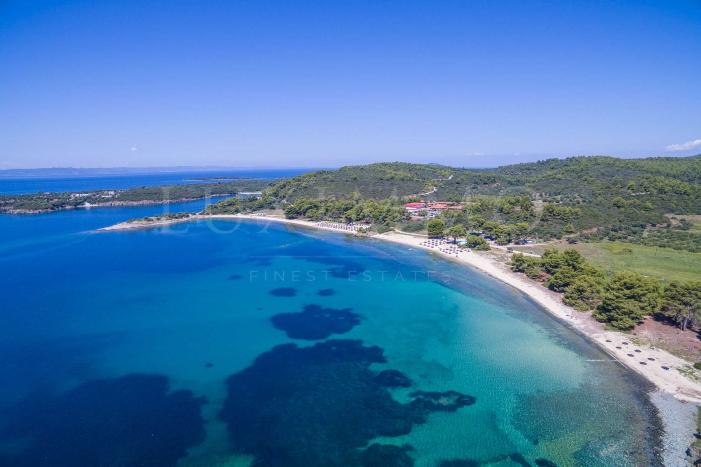 Наклонено поле, 17.373 кв.м, в Ситония, Халкидики, второ от плажа, с прекрасна панорамна гледка и със западна ориентация. Той е разделен на три еквивалента, достъпът му е по черен път и има електричество. Той е пълен и изграждащ се и е идеален за професионална употреба.