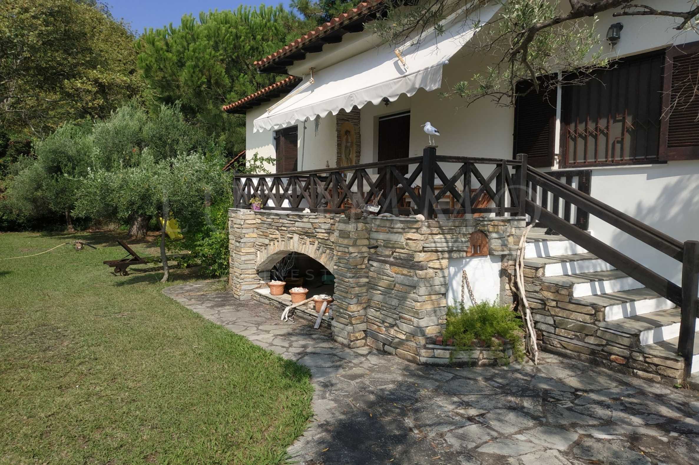 Самостоятелна самостоятелна къща, 110кв.м, в Ситония, Халкидики, само на 20 m. от красив плаж и със западна ориентация. Имотът е разделен на две нива, състоящ се от хол, свързан с кухнята, две спални и баня в приземния етаж и мазето, което представлява голямо неоформено пространство. Къщата , също така разполага с 600 кв.м градина, дървена дограма и палатки.