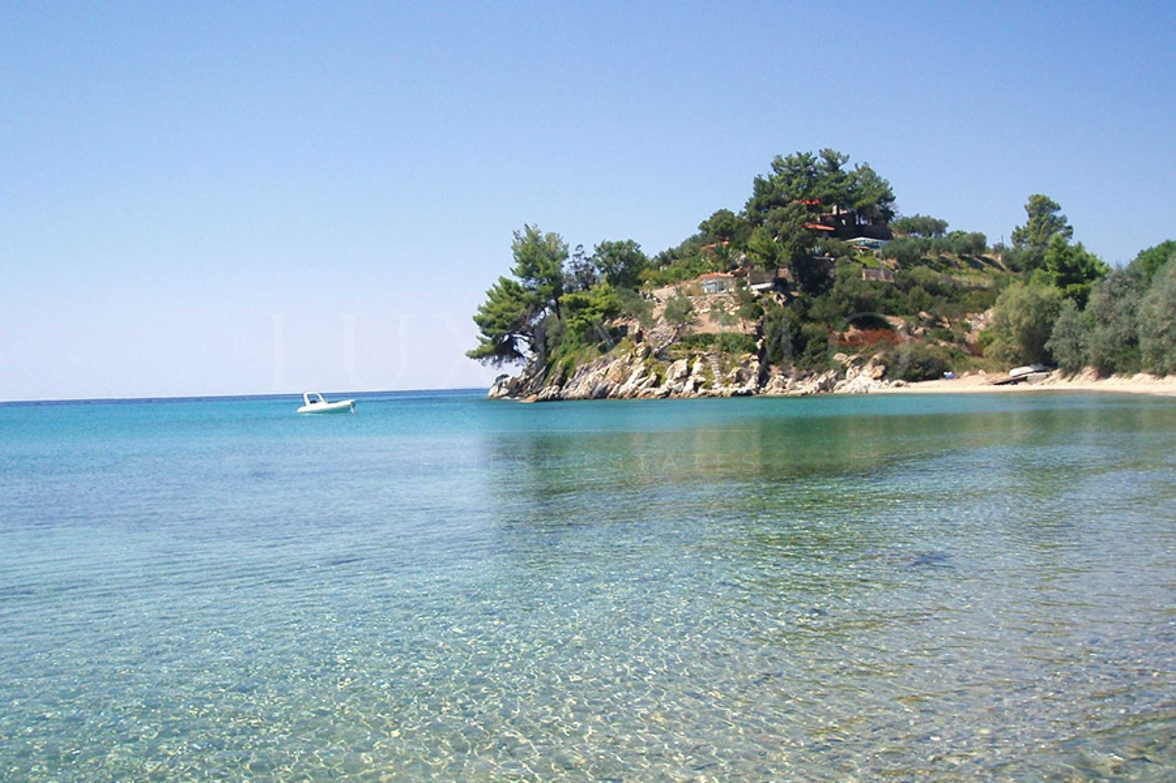 Красива самостоятелна къща, 200 кв.м, в Ситония, Халкидики, първо на морето, с прекрасна гледка и с югозападна ориентация. Имотът е заобиколен от 13 декара земя, покрита с дървета, и е на 7,5 км от центъра на селото. Той е разделен на две нива, състоящ се от хол, свързан с кухнята, четири спални, четири бани и килер. Къщата също има корт, павилион, барбекю, бойлер, резервоари за вода, автоматизирано поливане, блиндирана врата, алармена система, алуминиева дограма и подове за плочки. Имотът е обзаведен и напълно оборудван.
