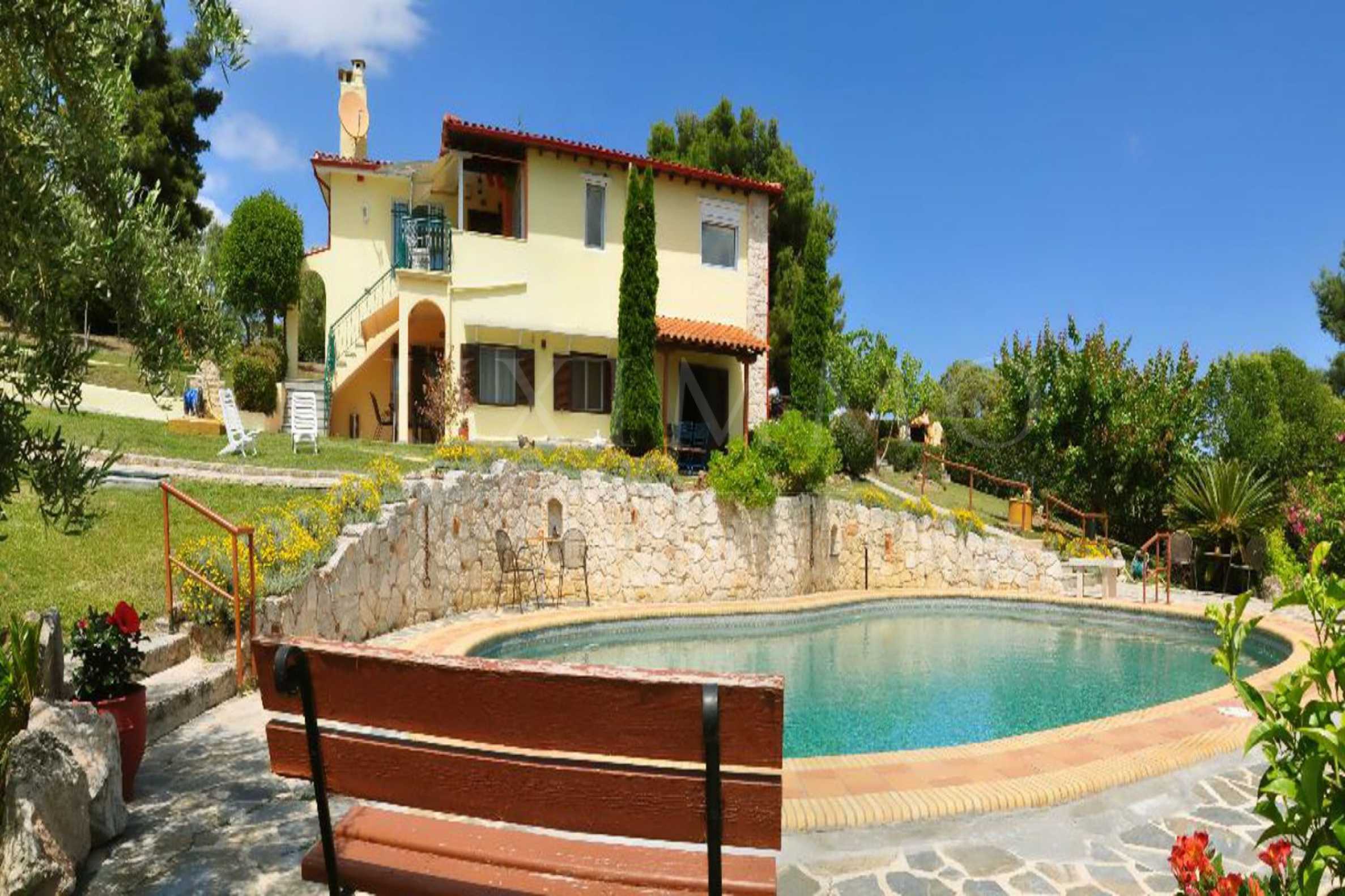 Предлагаме на вашето внимание вилa с площ 182 кв.м. Година на строителство: 1988. Отоплението се осъществява посредством камина и локално парно. Има климатизация. Имотът се предлага със следната степен на завършеност: алуминиева дограма и блиндирана входна врата. Имотът е снабден с собствен водоизточник и септична яма. Важно е да се отбележи, че имотът разполага с: балкон, баня с тоалетна, килер, паркинг, басейн и сот. От имота се разкрива гледка към морето.