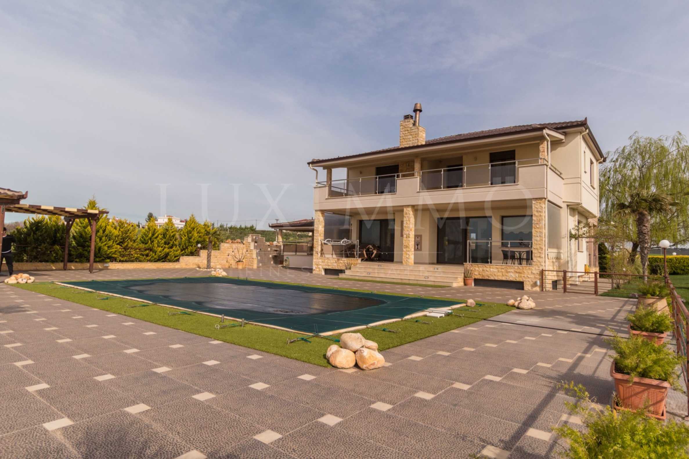 Предлагаме на вашето внимание вилa с площ 420 кв.м. Година на строителство: 2010. Отоплението се осъществява посредством камина и локално парно. Има климатизация. Имотът се предлага със следната степен на завършеност: алуминиева дограма и блиндирана входна врата. Имотът е снабден с собствен водоизточник и септична яма. Важно е да се отбележи, че имотът разполага с: балкон, баня с тоалетна, килер, мазе, асансьор, басейн и сот.
