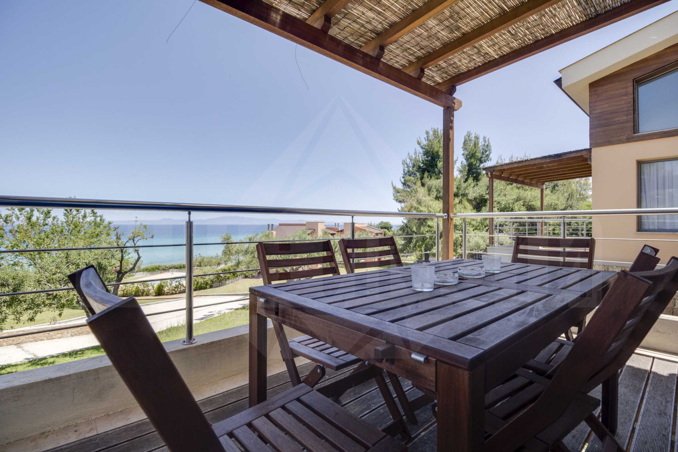 Предлагаме на вашето внимание вилa в малък комплекс и отличителна модерна архиктектура с площ 118 кв.м. в Криопиги, Касандра.Година на строителство: 2008. Имотът е напълно завършен, като за неговото изгражане са използвани висококачествени материали.