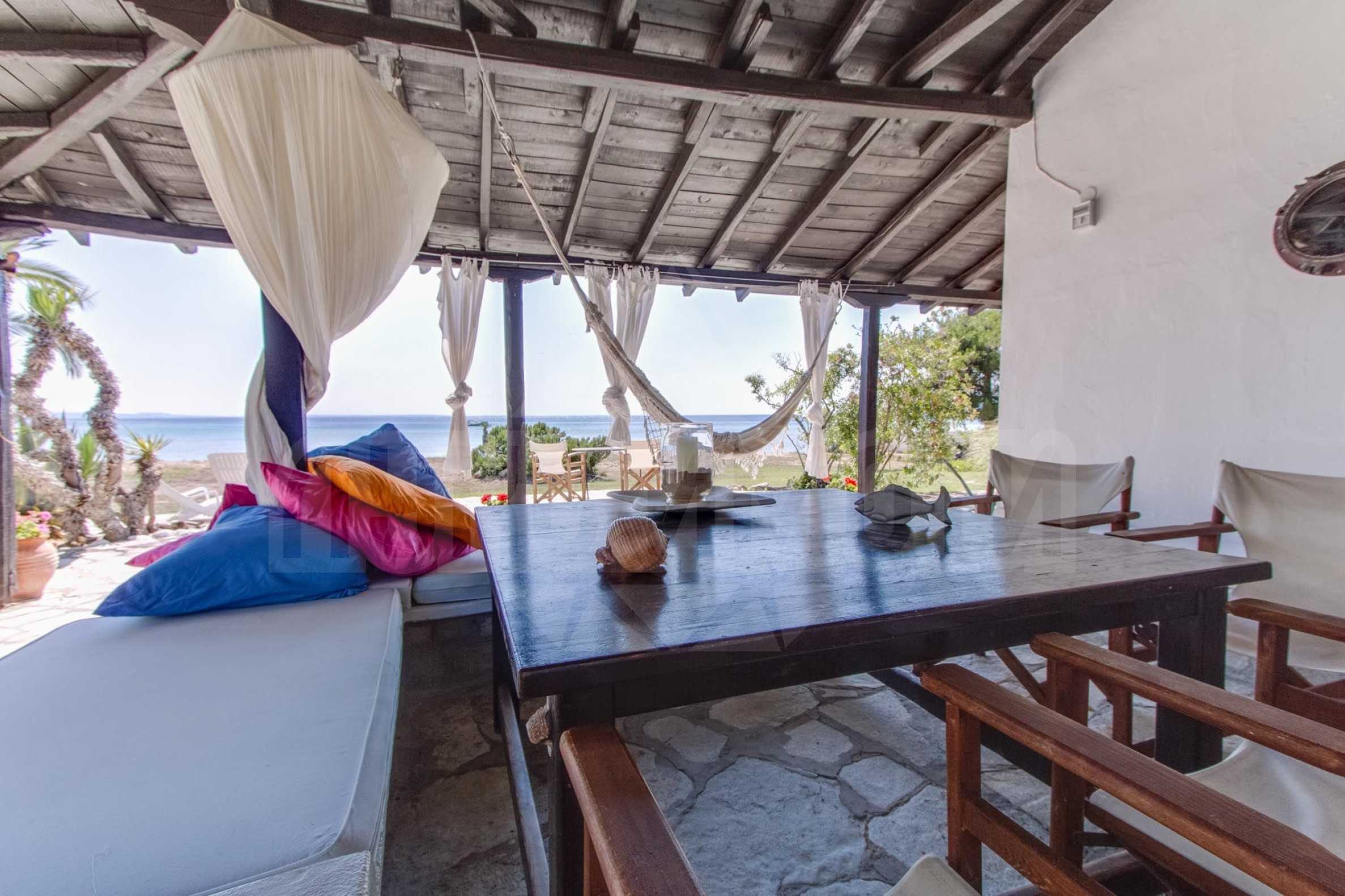 Самостоятелна къща за почивка в Ситония, Халкидики. Имотът е с площ от 240 кв.м. с голям просторен двор. Луксозен морски имот на брега на морето с прекрасни панорамни гледки.
