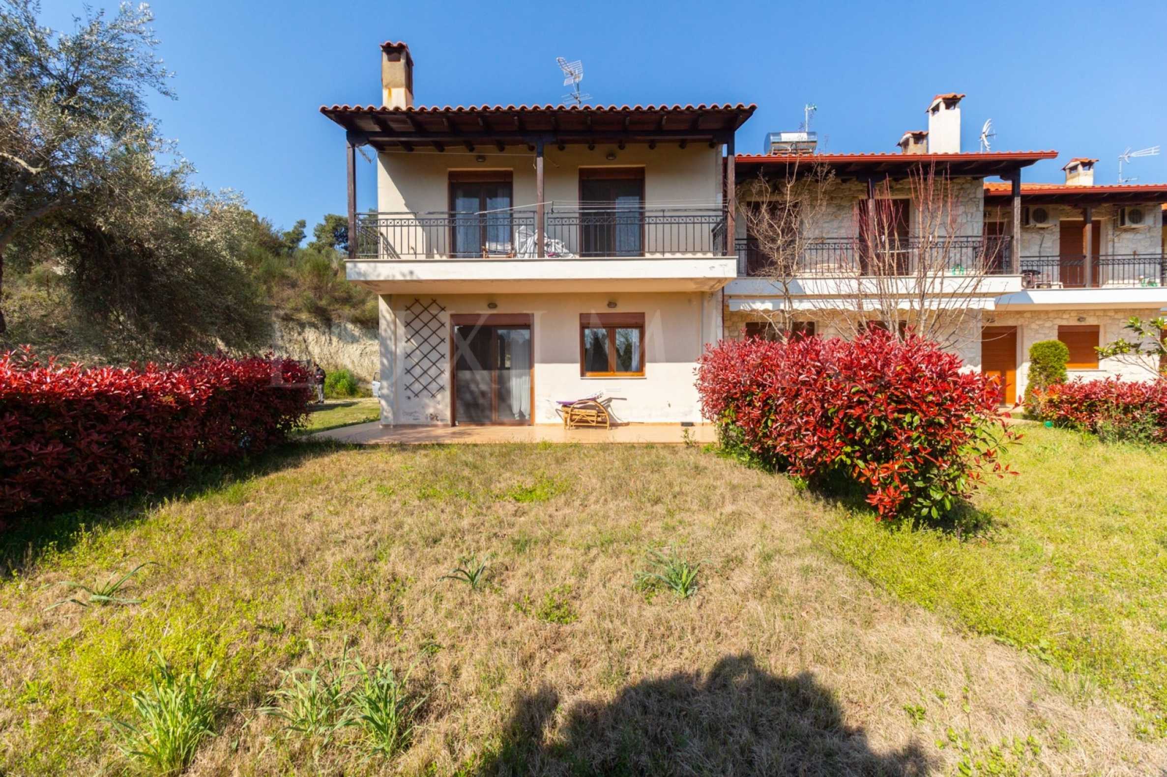 Ъглов мезонет, 90 кв.м, в Касандра, Халкидики с източна ориентация и с безпрепятствен постоянен изглед. Имотът е в комплекс от пет къщи и е на 2 км от плажа и центъра на селото. Мезонетът е разделен на две нива, състоящи се от хол, свързан с кухнята, две спални, една баня, тоалетна и две помещения за съхранение. Имотът също има място за паркиране, блиндирана врата и просторна частна градина.