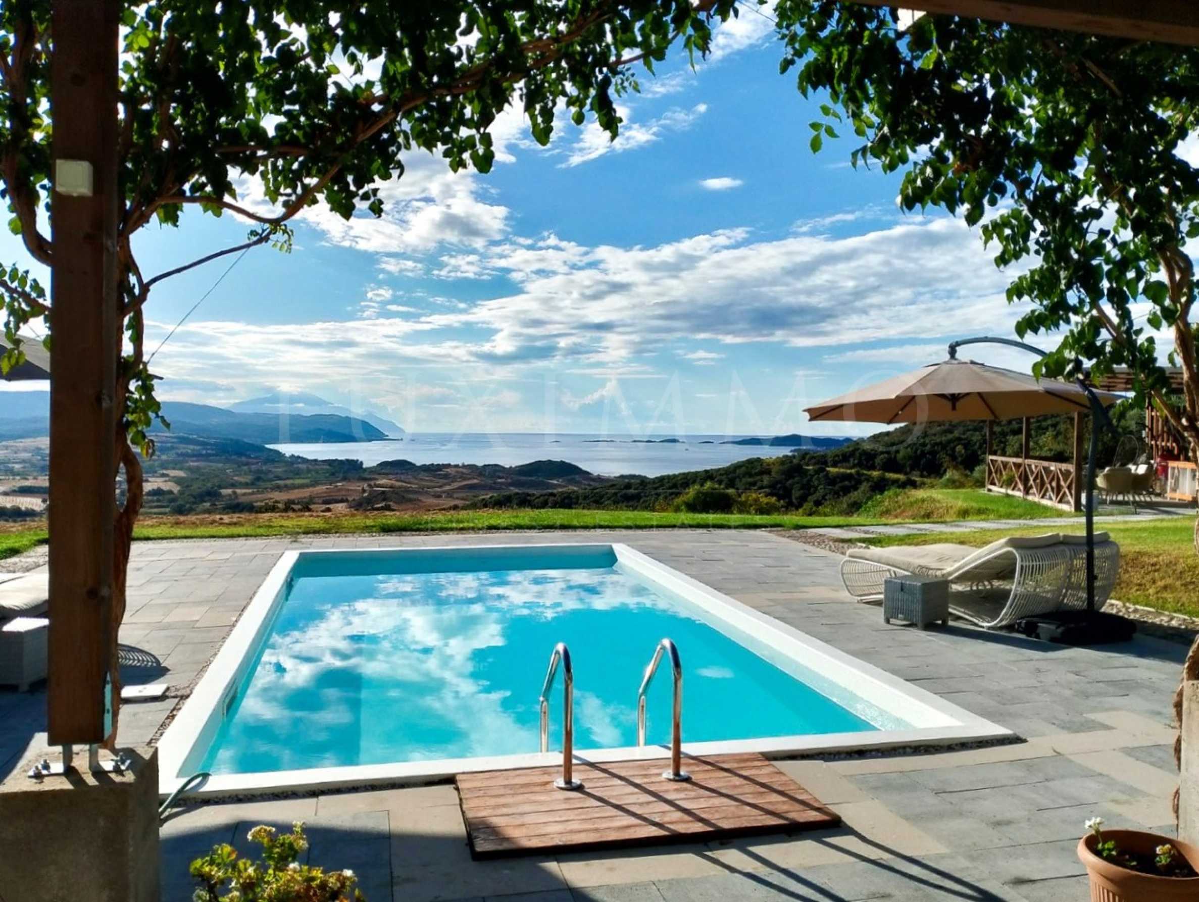 самостоятелна двуетажна вила, разположена на тих хълм с почти 360° изгледи към Егейско море. Гледките се простират от залива Йерисос до далечния