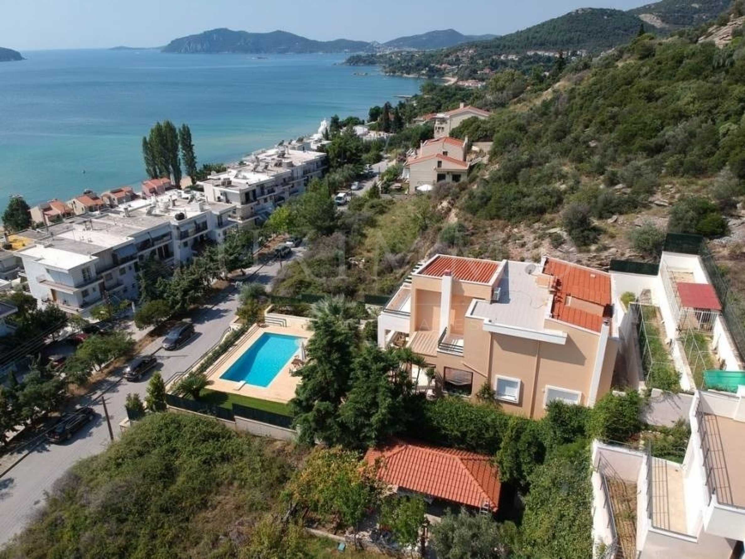ПРОДАВА СЕ: ЕКЛУЗИВНА ЗА НАС уникална красота в сърцето на ваканционен комплекс ПАЛИО КАВАЛАС. Къщата е с РЗП 375квм и е построена на три нива и върху парцел от 800кв.м. На приземния етаж се намира къщата за гости, където намираме всекидневна с директен достъп до красивата градина и басейн, голяма баня. На 1-ви етаж, където е главният вход, откриваме просторна всекидневна на 2 нива с невероятна гледка към залива на Палио, отделна трапезария, удобна отделна кухня с директен достъп до градината и барбекю, W/C, офис стая и килер. На 2-ри етаж се намират 3 големи спални и МАЙСТОРСКА СТАЯ със съблекалня и самостоятелна баня с хидромасажна вана, както и основната баня на къщата. Всички стаи са с невероятна гледка към планината и морето. ОТОПЛЕНИЕ: Автономно на нафта и пелети. ЕКСТРА: Невероятна гледка към залива на Палио, алуминиева дограма, блиндирана врата, дървени подове, климатик, алармена система, 2 бани с джакузи, сутерен паркинг 3-5 места с директен достъп до вътрешността на къщата, с асансьор достъп до всички нива на къщата (и гаража), басейн, много складови помещения, барбекю, собствен сондаж. РАЗСТОЯНИЯ от морето - 150 метра От супермаркета - 600 метра От центъра на града -Ољавала - 8 км От училището – 180 метра Година на строителство: 2006 г.,