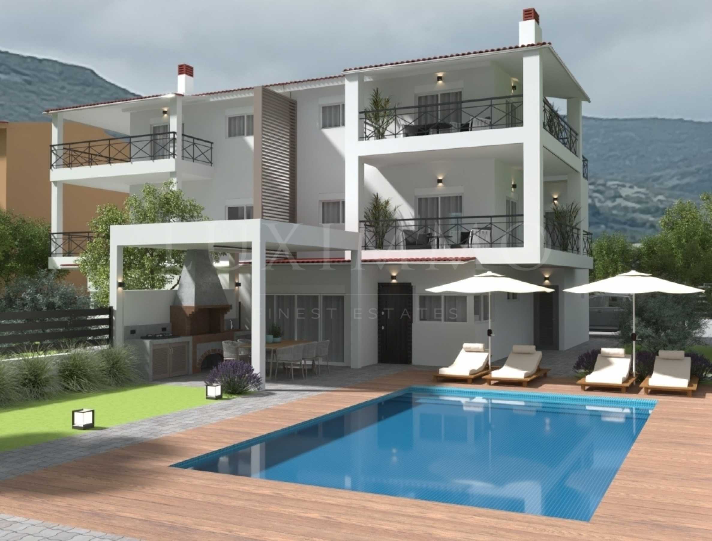 Продава се новострояща се луксозна къща на 3 нива с РЗП 200 кв.м. върху парцел от 340 кв.м. в Неа Ираклица на Кавала. Състои се от партерен етаж с площ от 81кв.м. който ще се състои от хол, трапезария, кухня, баня и голямо складово помещение, на 1-ви етаж имаме 59кв.м. и ще се състои от 2 спални, баня, перално-сушилно помещение и веранда, а на 2 етаж имаме 60кв.м. ще се състои от 1 родителска спалня, баня и малка спалня. В цената са включени всички електроуреди и обзавеждане (видно на снимките), климатик във всички стаи, слънчев бойлер и пълна инсталация за термопомпа. Отвън ще има басейн, беседка с барбекю, перголи и зеленина, както и място за паркиране. Целият имот външно ще бъде изолиран с топлоизолация - черупка. Отлично предложение само на 470 м от морето в Неа Ираклеица на Кавала. За оглед на имота е необходимо представяне на полицейска лична карта.