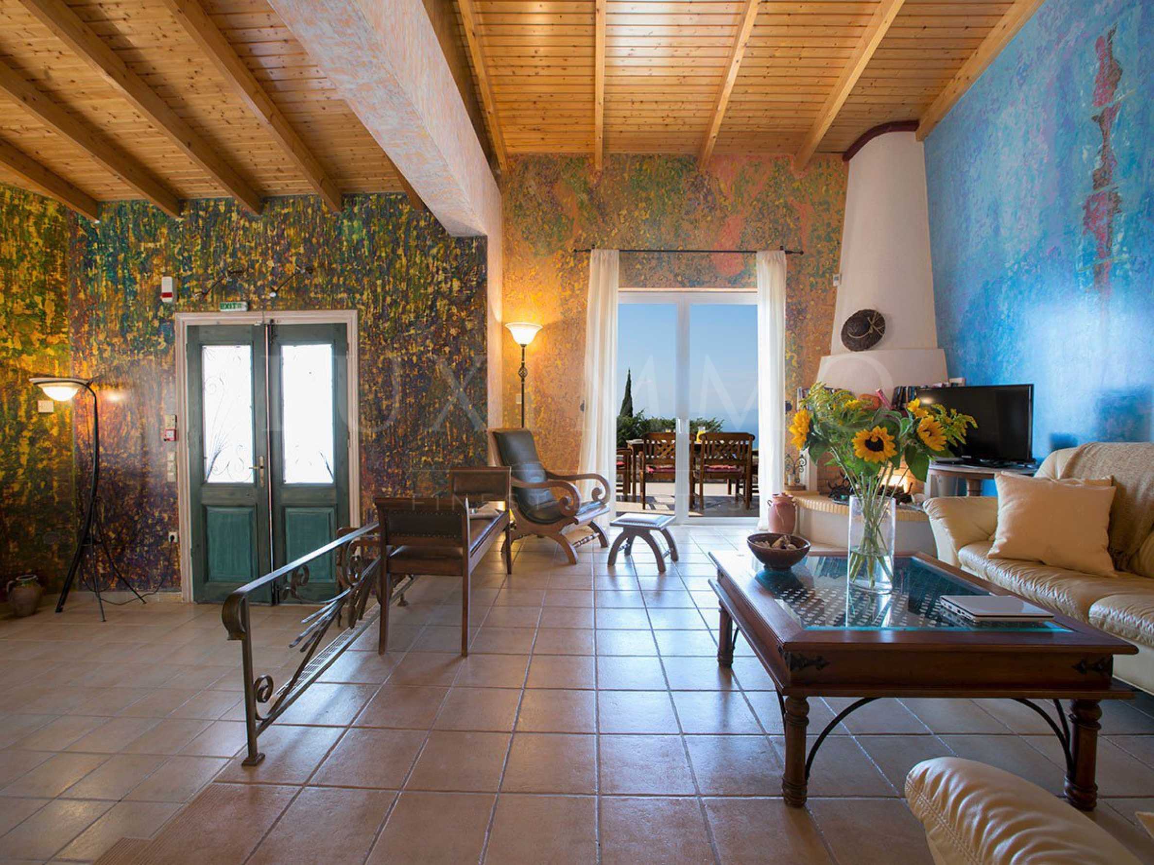 Имаме удоволствието да Ви представим артистична вила в тих и спокоен район в близост до град Лефкада. Обширни пространства и панорамни гледки към морето са едни от предимствата на имота. Имате гаранция за абсолютно уединение и релакс. Артистичните декорации и високото качество на материалите придават завършеност и стил в архитектурно отношение. Страхотен както за целогодишно ползване, така и за инвестиция.