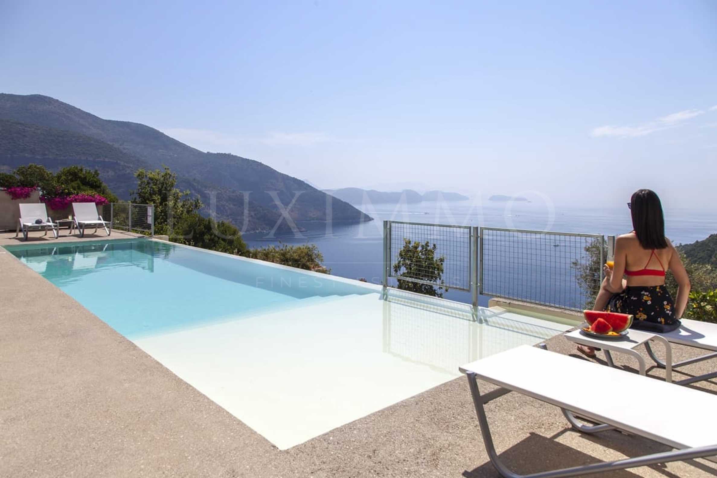Голямата частна открита площ е всичко, което бихте очаквали от перфектния избор на вила за следващата ви почивка в Гърция. Инфинити басейнът, трапезарията на открито и местата за сядане дават възможност на всеки гост да има свое собствено пространство за моменти за почивка. Гледките към Йонийските архипелази и околните острови на заден план ще ви хипнотизират от сутрин до вечер с безкрайните яхти, които идват и тръгват на пътешествията си през кристално сините води.