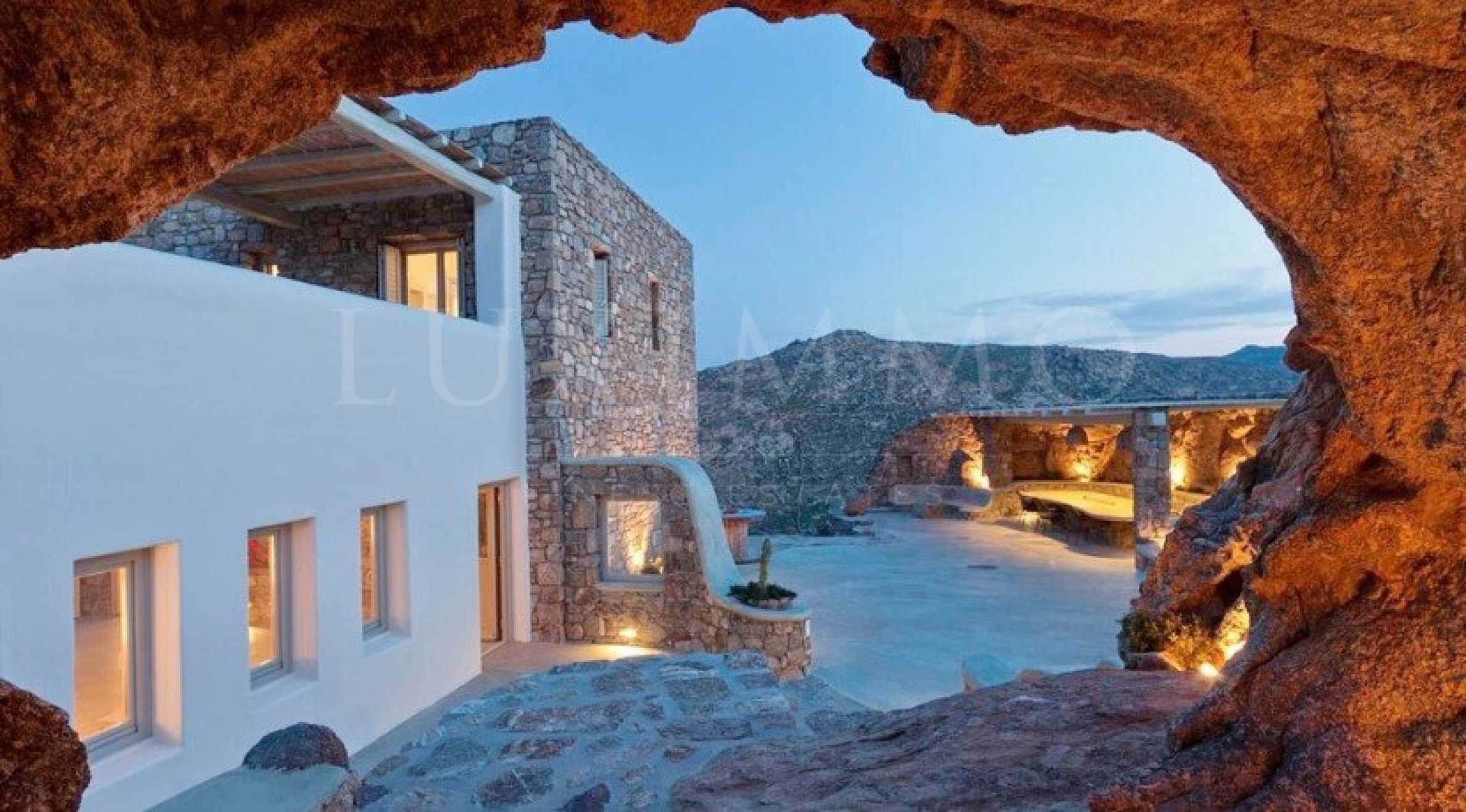 Имаме удоволствието да ви представим този изумителен имот, построен през 2010 година, на билото на скалист хълм, от където се разкрива фантастична гледка към кристално чистите води на Егейско море и скалистия пейзаж на остров Миконос.