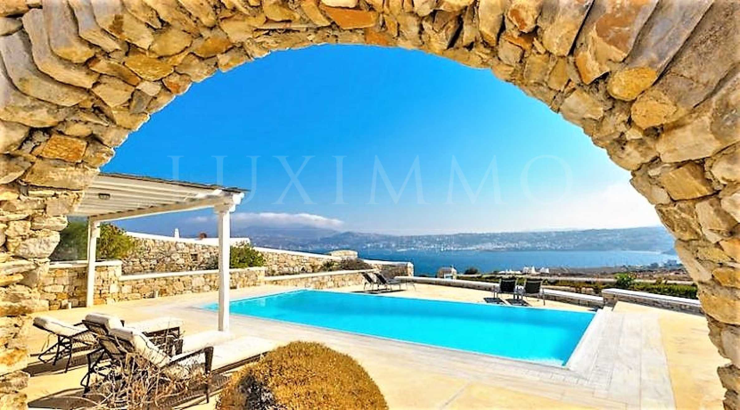 Предлагаме Ви тази величествена резиденция на остров Миконос в района на Kanalia, в непосредствена близост до плажовете на Орнос и гръцката столица на световния лайфстайл, гр. Миконос.