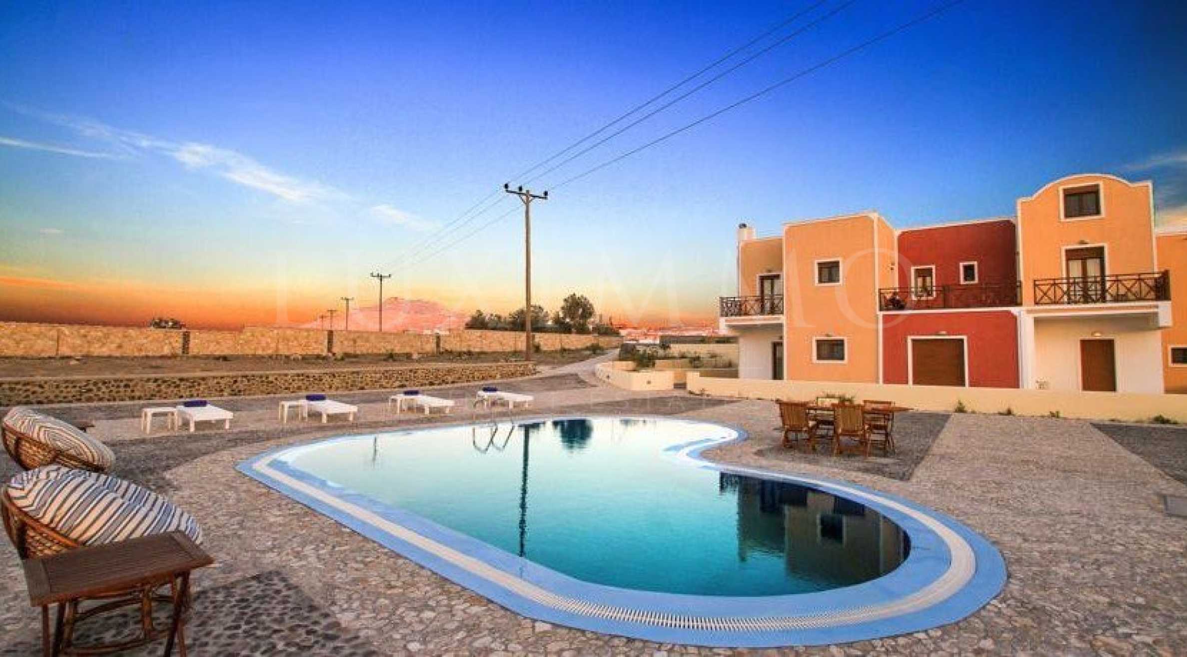 Позициониран в магическата праисторическа местност Акротири, гледайки към спиращите дъха Калдера, вулкана и необятното тюркоазено синьо Егейско море, имотът е на 300 метра от плажа, 1,5 км. от археологическия обект на древния град Акротири, 13 километра от оживения град Фира, 12 километра от летище Санторини и на 10 километра от пристанище Атиниос.