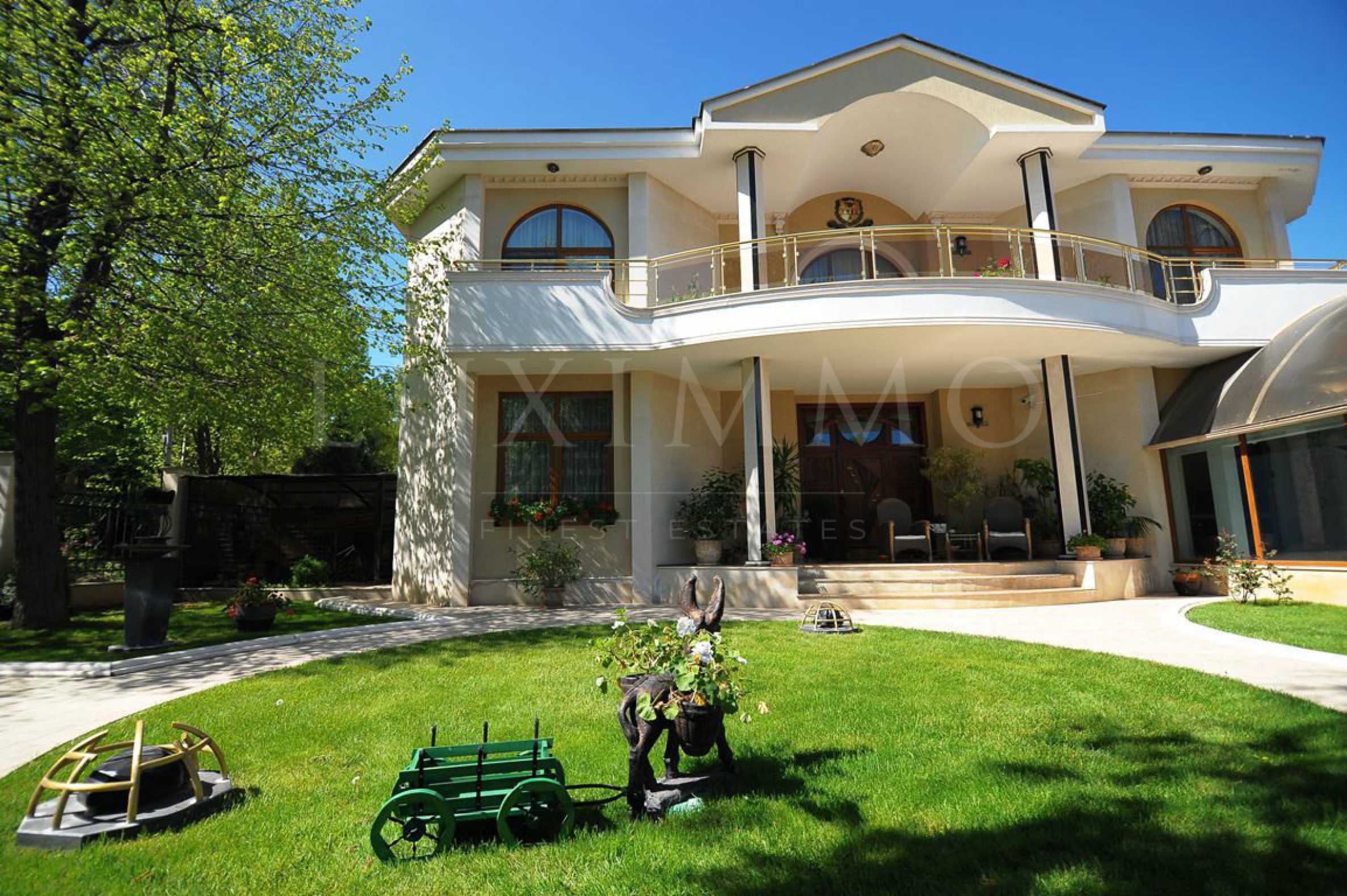Къщата е построена върху парцел с размер 1346 кв.м, ограден с дизайнерска ограда от ковано желязо, която е поставена в железобетонна конструкция облицована с мрамор.