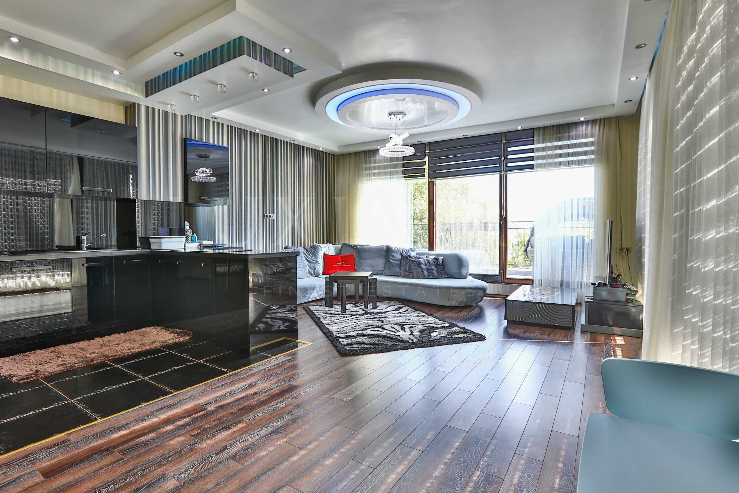 Апартаментът е разположен на пети жилищен етаж от общо шест. Той е с източно изложение, морска панорама и обща площ 132 кв.м. Предлага се за продажба завършен до ключ с монтирана кухня. Възможно е закупуването на подземно паркомясто.