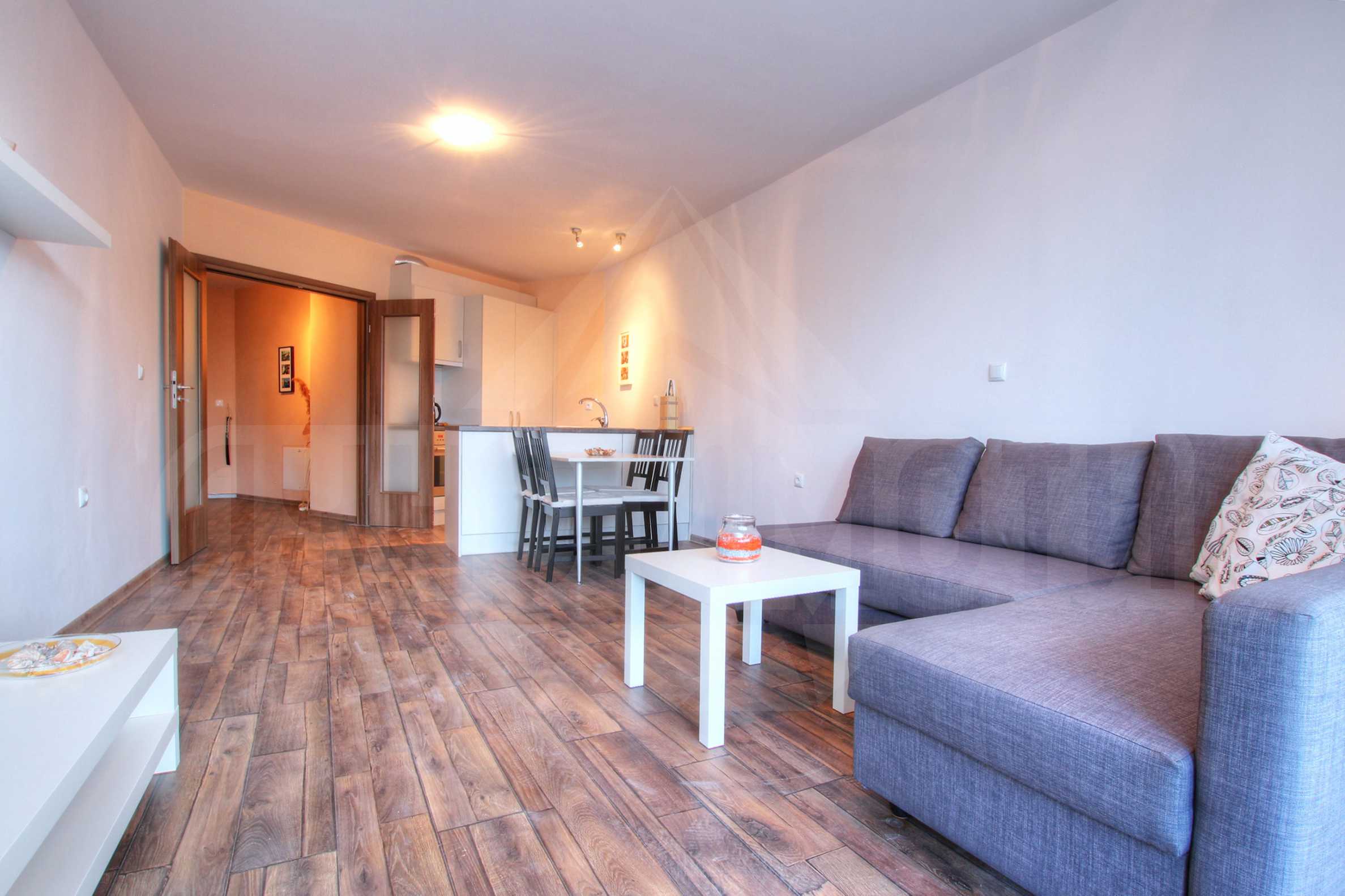 Напълно обзаведеното жилище се състои от антре, дневна с кухненски бокс, спалня и балкон. Кухнята разполага с готварска печка, съдомиялна, пералня, сушилня - всички от реномирана марка. Комфортен ъглов диван, стъклена холна маса, шкаф от дървен материал, LCD телевизор, музикална уредба (марка Samsung) в хола, както и двойно легло, бюро, 2бр. нощни шкафчета, гардероб с плъзгащи се врати - в спалнята, допринасят за цялостната визия и завършеност на жилището. Югоизточното изложение внася уют и светлина в помещенията, а голямата тераса с гледка към Люлин планина дава възможност за релакс на открито.