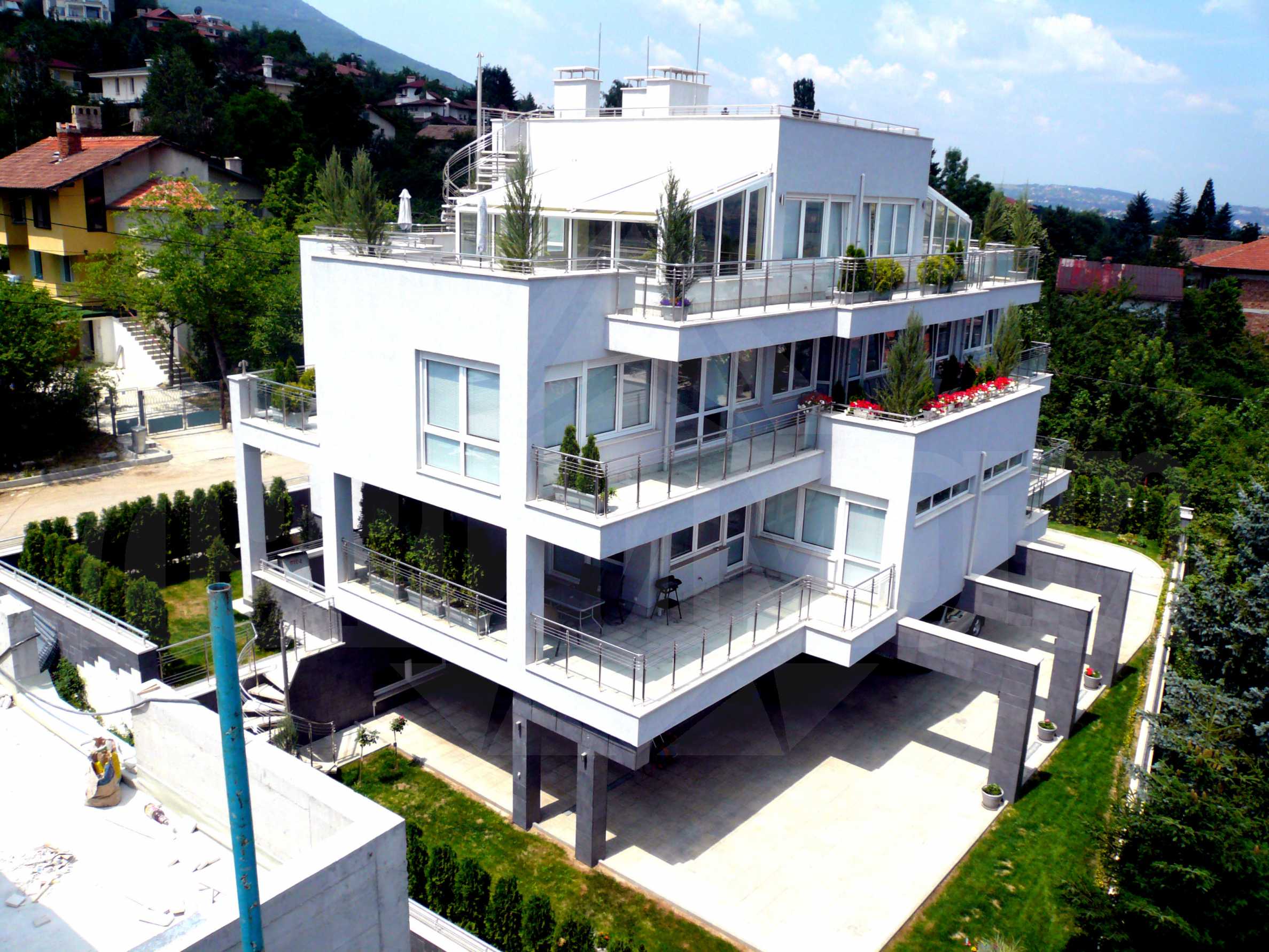 Модерният и стилен имот, съчетаващ най- съвременните решения в строителството и архитектурата с отличните даденостите на терена, се намира в най- елитната част на района, който е изключително сигурен и безопасен, застроен от луксозни имоти.