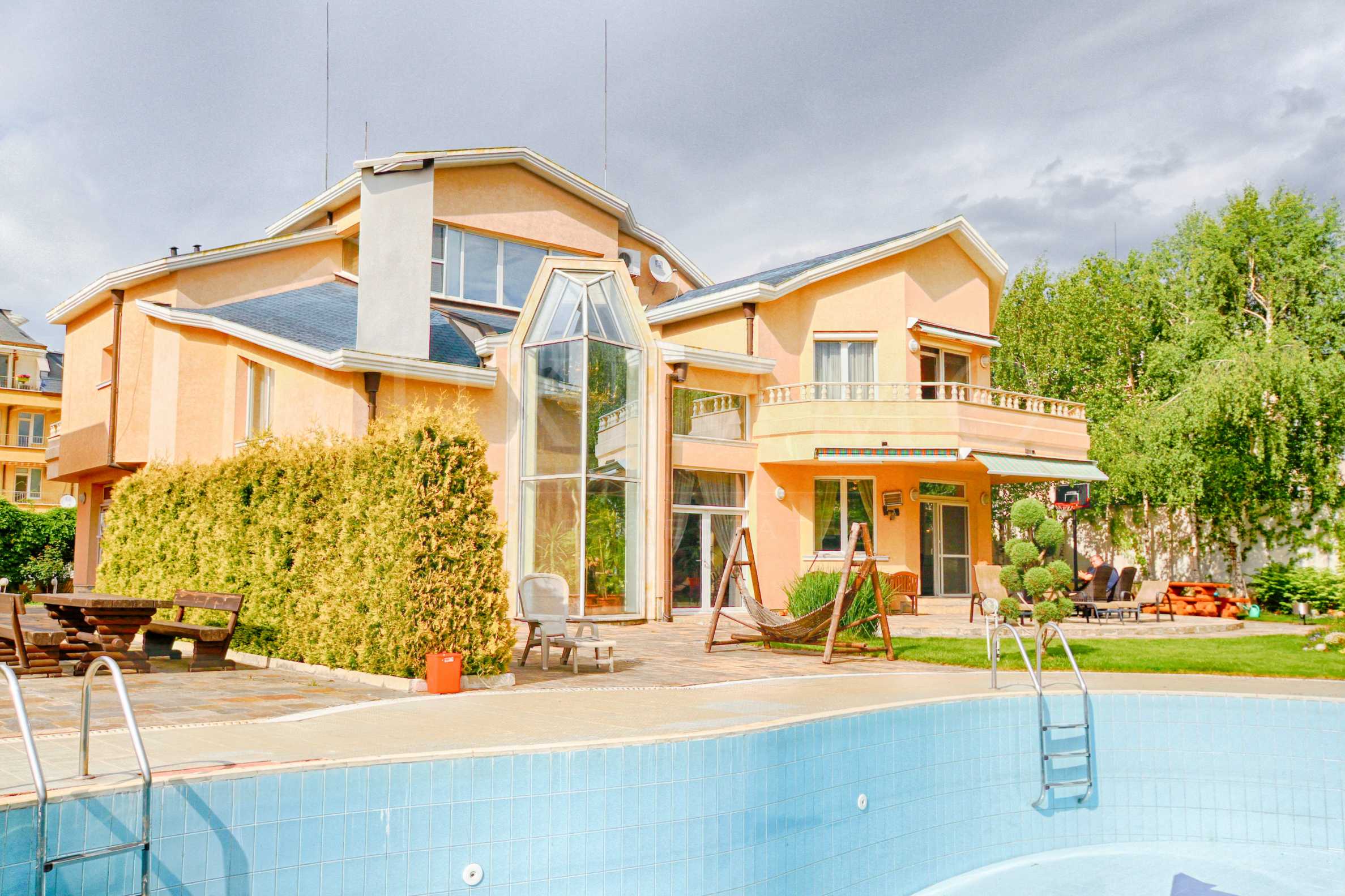 - Озеленена и поддържана паркова зона с голям външен отопляем басейн и барбекю;