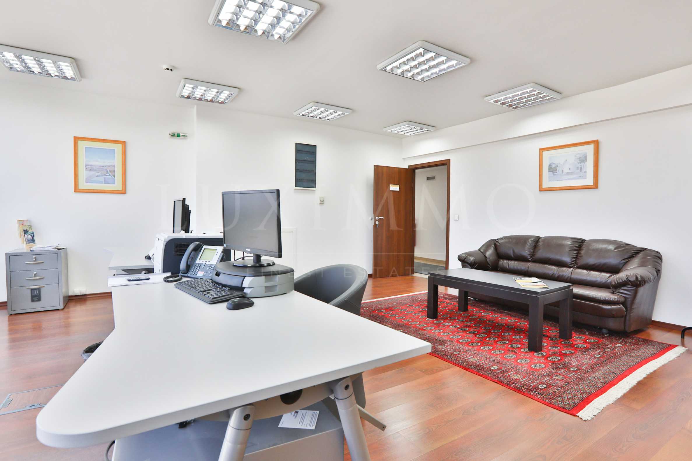 Офисът е разположен на целия 1-ви етаж с площ от 410.23 кв.м. и разполага със санитарен възел и кухненски бокс.