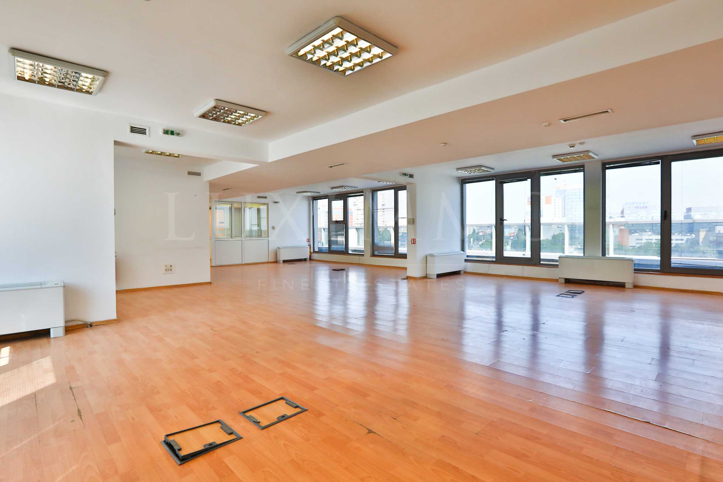 Офисът е разположен на целия 2-ри етаж, с площ от 443.94 кв.м. като на етажа има санитарен възел и кухненски бокс.